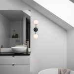 Seinävalaisin mattamustaa metallia opaalivalkoisilla lasikuvuilla.