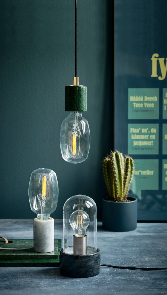 Siv-valaimessa yksinkertaisuus on avainasemassa. Jykevä marmorijalusta luo tyylikkään kontrastin lämpimän, koristeellisen valonlähteen kanssa ja luo tehokkaan design-ilmeen. Luo oma ilme lisäämällä sisustukseesi sopiva polttimo.