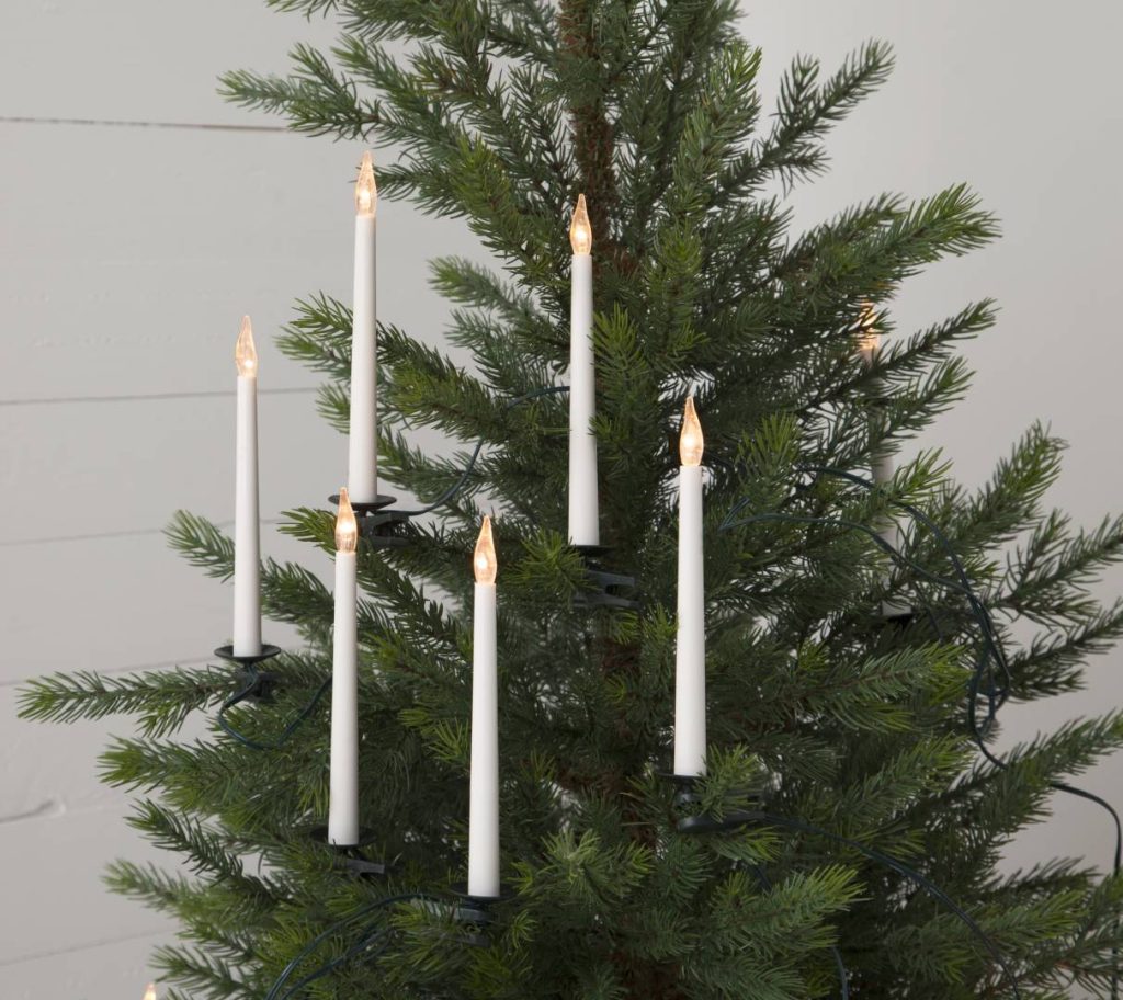 Tässä kuusenkynttiläsarjassa lamput ovat rivissä, eli ensimmäinen lamppu sijaitsee lähimpänä pistoketta ja viimeinen lamppu valosarjan toisessa päässä.