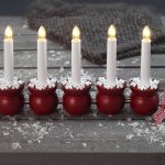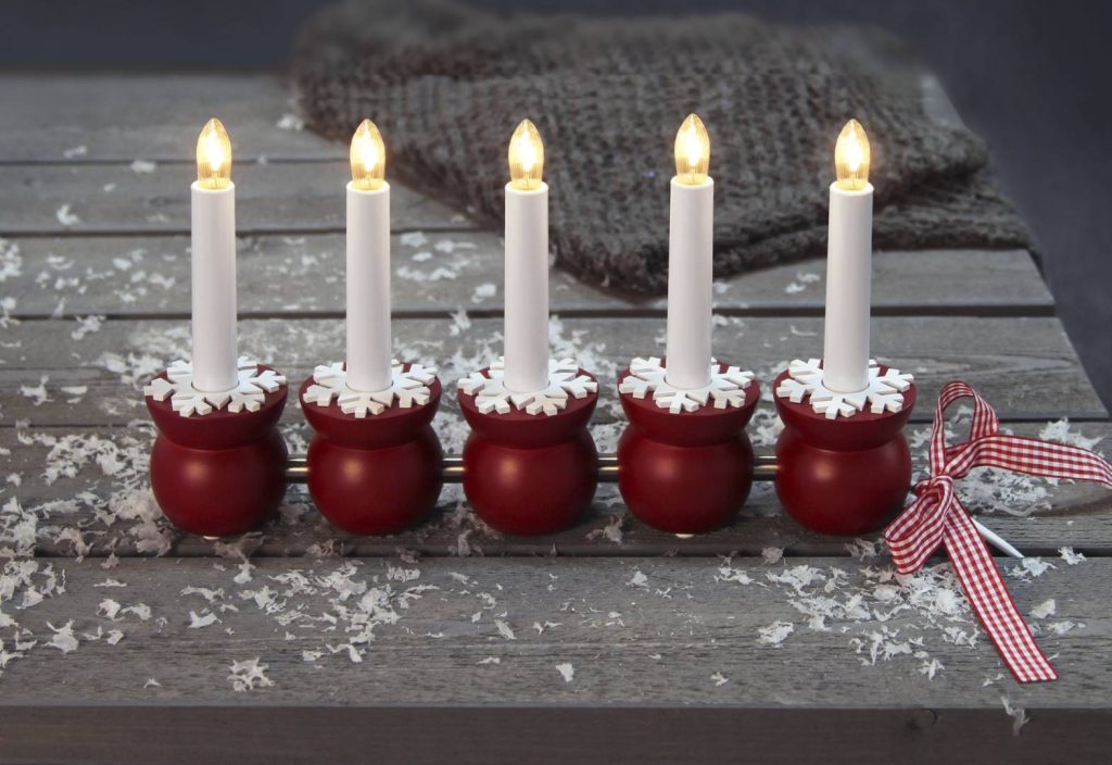 Valkoiset puiset lumihiutale-mansetit. Sopii 5- ja 7-haaraisiin kynttelikköihin.