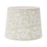 Lampunvarjostin puuvillaa. Kuvio ’De Mina’ esiintyy joidenkin Carl Larssonin kirjojen alkulehdillä, muun muassa kirjassa ’De mina’.