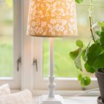Lampunvarjostin puuvillaa. Kuvio ’De Mina’ esiintyy joidenkin Carl Larssonin kirjojen alkulehdillä, muun muassa kirjassa ’De mina’.