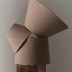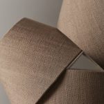 Lampunvarjostin pellavan tuntuista kangasta.
