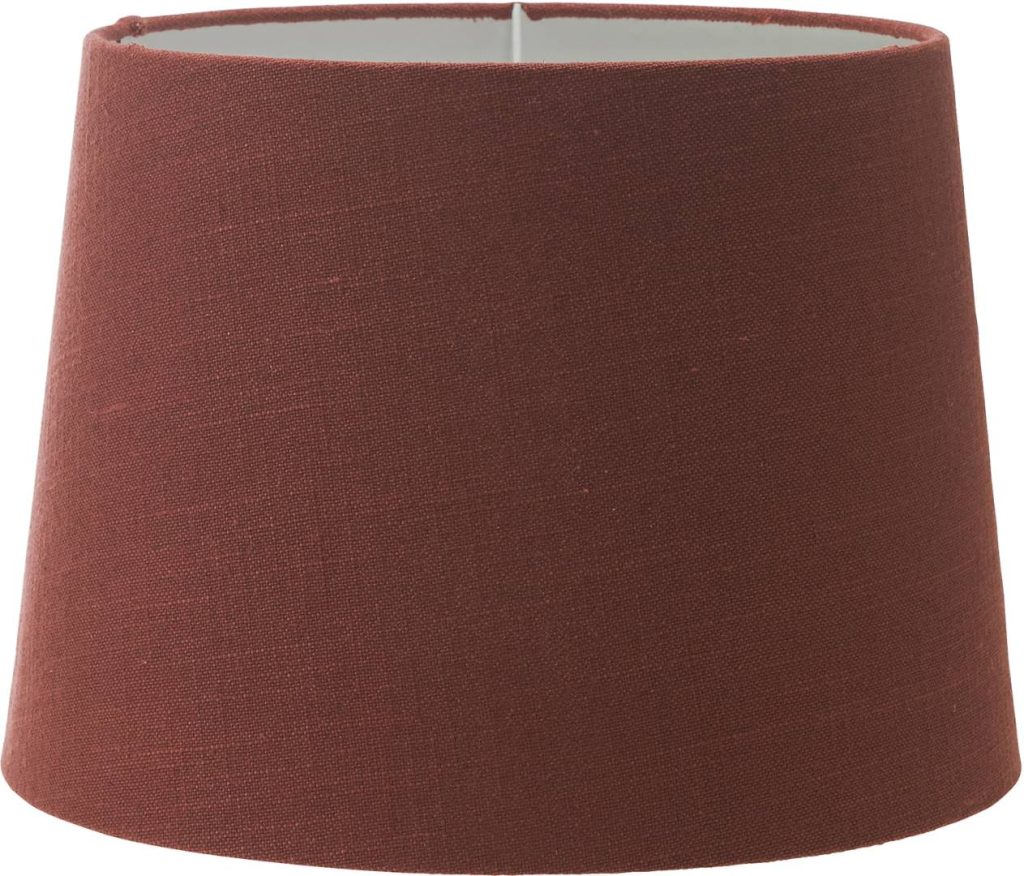 Lampunvarjostin pellavan tuntuista kangasta.