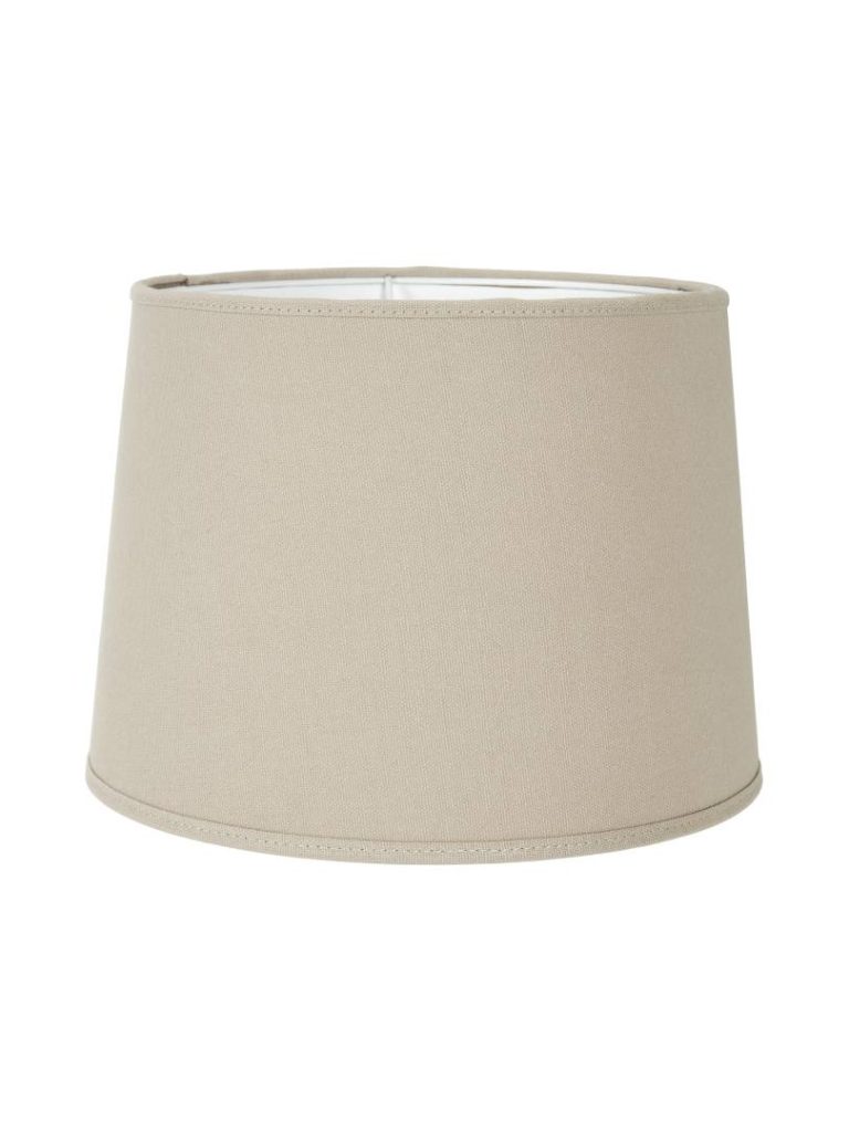 Lampunvarjostin napakkaa mattapintaista puuvillakangasta. Valkoinen sisäpinta ja kankaan värinen reunusnauha.