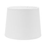 Lampunvarjostin pellavakangasta. Valkoinen sisäpinta ja reunoissa kanttinauha samasta kankaasta.