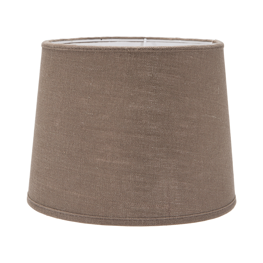 Lampunvarjostin pellavakangasta. Valkoinen sisäpinta ja reunoissa kanttinauha samasta kankaasta.
