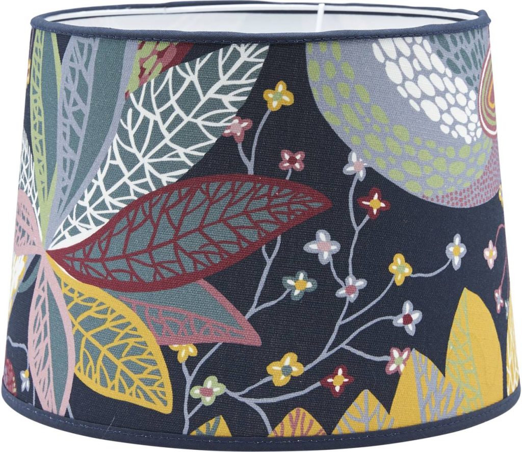 Sofia lampunvarjostin on malliltaan pyöreä, ja hieman alaspäin levenevä. Kangas on kauniisti kuvioitua puuvillaa.