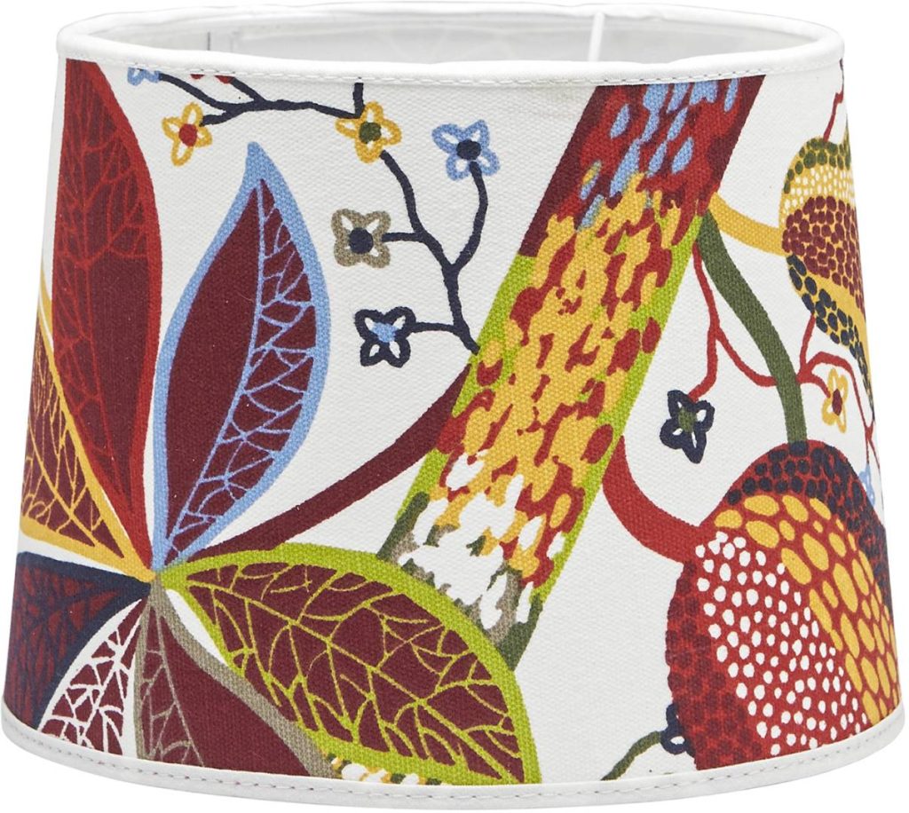 Sofia lampunvarjostin on malliltaan pyöreä, ja hieman alaspäin levenevä. Kangas on kauniisti kuvioitua puuvillaa.
