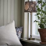 Dahlia-lampunvarjostin ruskean ja puuteriroosan värisenä. Varjostimet on luotu PR Homen ja Boråstapeterin yhteistyönä. Dahlia Garden -kangas on 100% kierrätettyä polyesteria,
