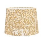 Under the Elder Tree -lampunvarjostin tumman leijonankeltaisen värisenä. Varjostin on luotu PR Homen ja Boråstapeterin yhteistyönä. Under the Elder Tree -kangas on 100% kierrätettyä polyesteria, kuvio on digitaalisesti painettu, ja värit tulevat kuosista kauniisti esiin. Kangas on painettu Boråsissa, Ruotsissa.