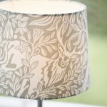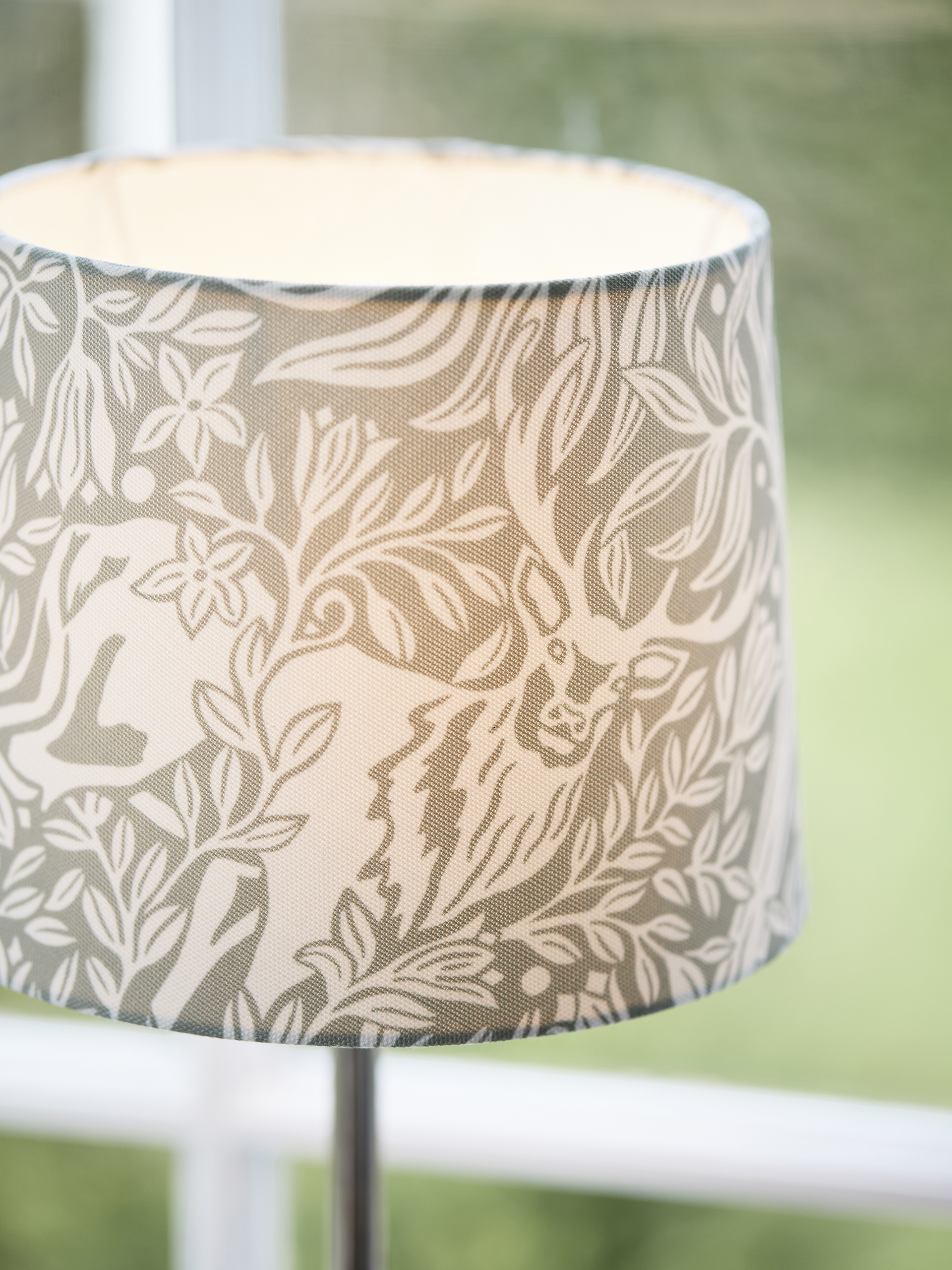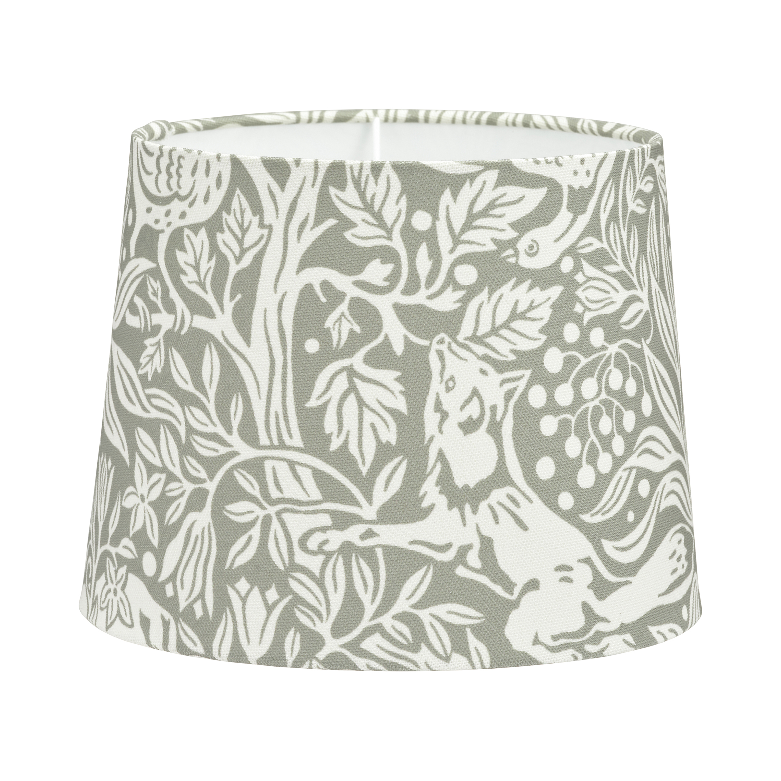 Kankaan tiheä lehvästö luo kauniin yhtenäisen kuvion ja lähempää tarkasteltuna metsän valtakunnasta paljastuu kauniita yksityiskohtia. Lampunvarjostin, joka sopii niin lapsille kuin aikuisille!