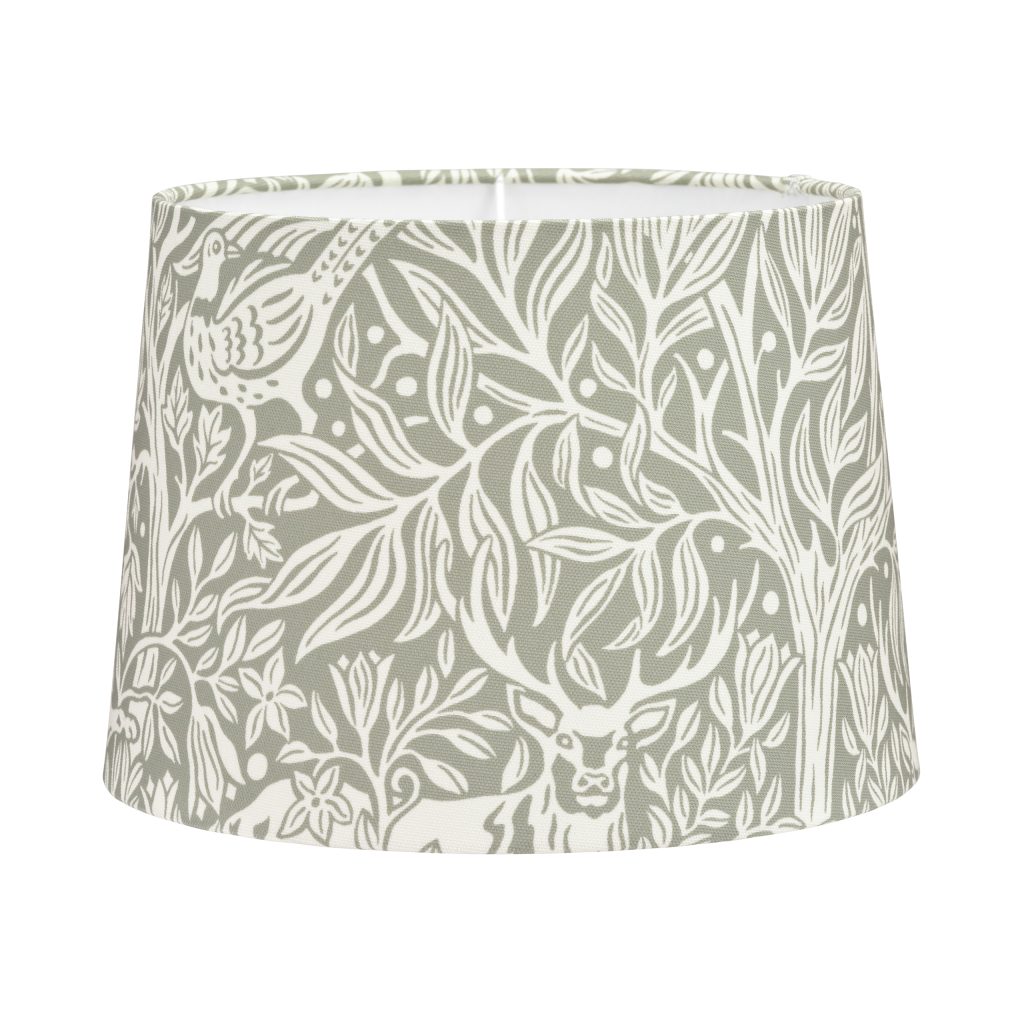 Kankaan tiheä lehvästö luo kauniin yhtenäisen kuvion ja lähempää tarkasteltuna metsän valtakunnasta paljastuu kauniita yksityiskohtia. Lampunvarjostin, joka sopii niin lapsille kuin aikuisille!
