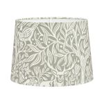 Under the Elder Tree -lampunvarjostin rauhallisen harmaanvihertävän värisenä. Varjostin on luotu PR Homen ja Boråstapeterin yhteistyönä. Under the Elder Tree -kangas on 100% kierrätettyä polyesteria, kuvio on digitaalisesti painettu, ja värit tulevat kuosista kauniisti esiin. Kangas on painettu Boråsissa, Ruotsissa.