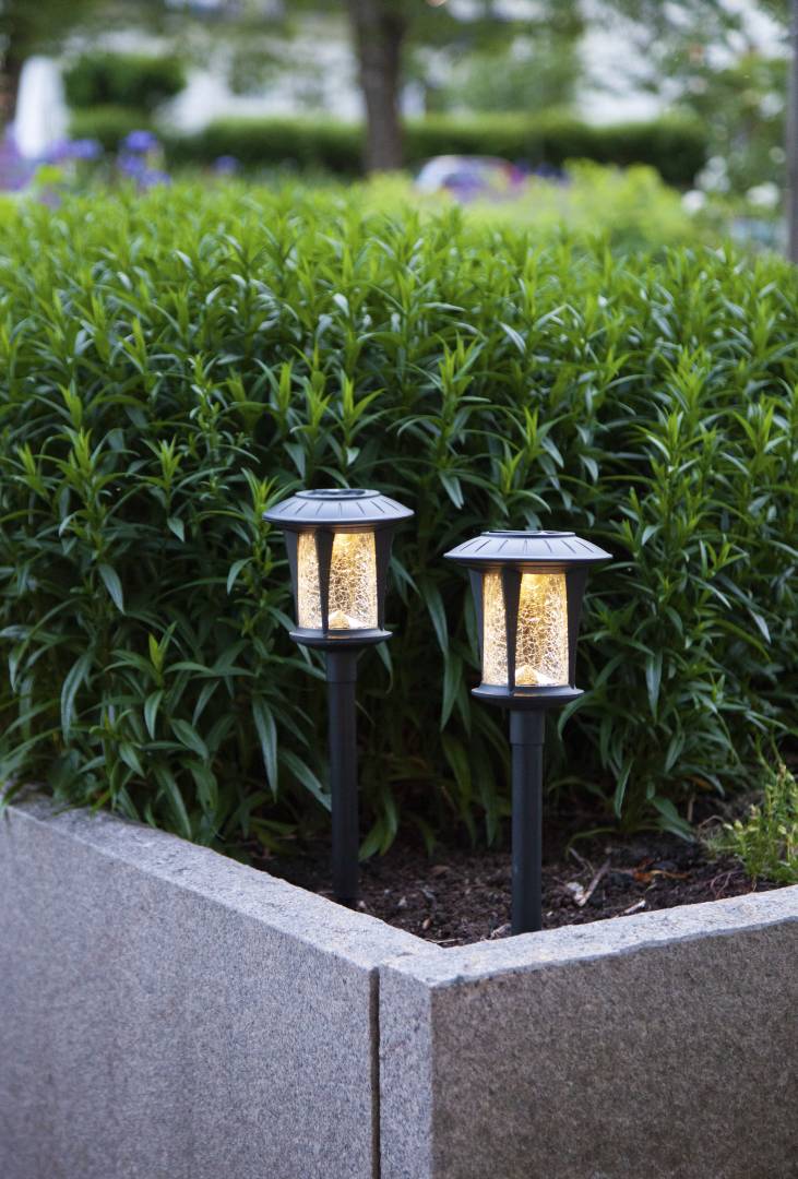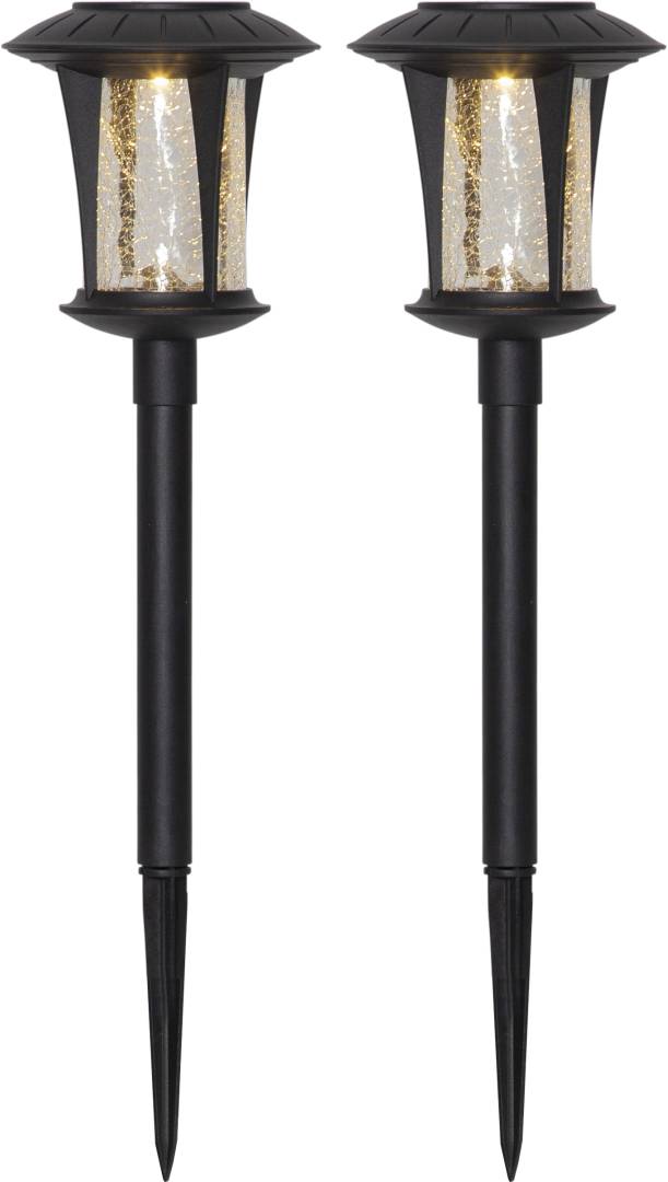 Aurinkokennolla toimiva pollarivalaisin kahden kappaleen pakkauksessa. Valaisimissa on lämpimän valkoinen valo ja kaunis krakleerattu lasi. Pollarit sopivat esimerkiksi puutarhaan tai terassille koristeeksi.