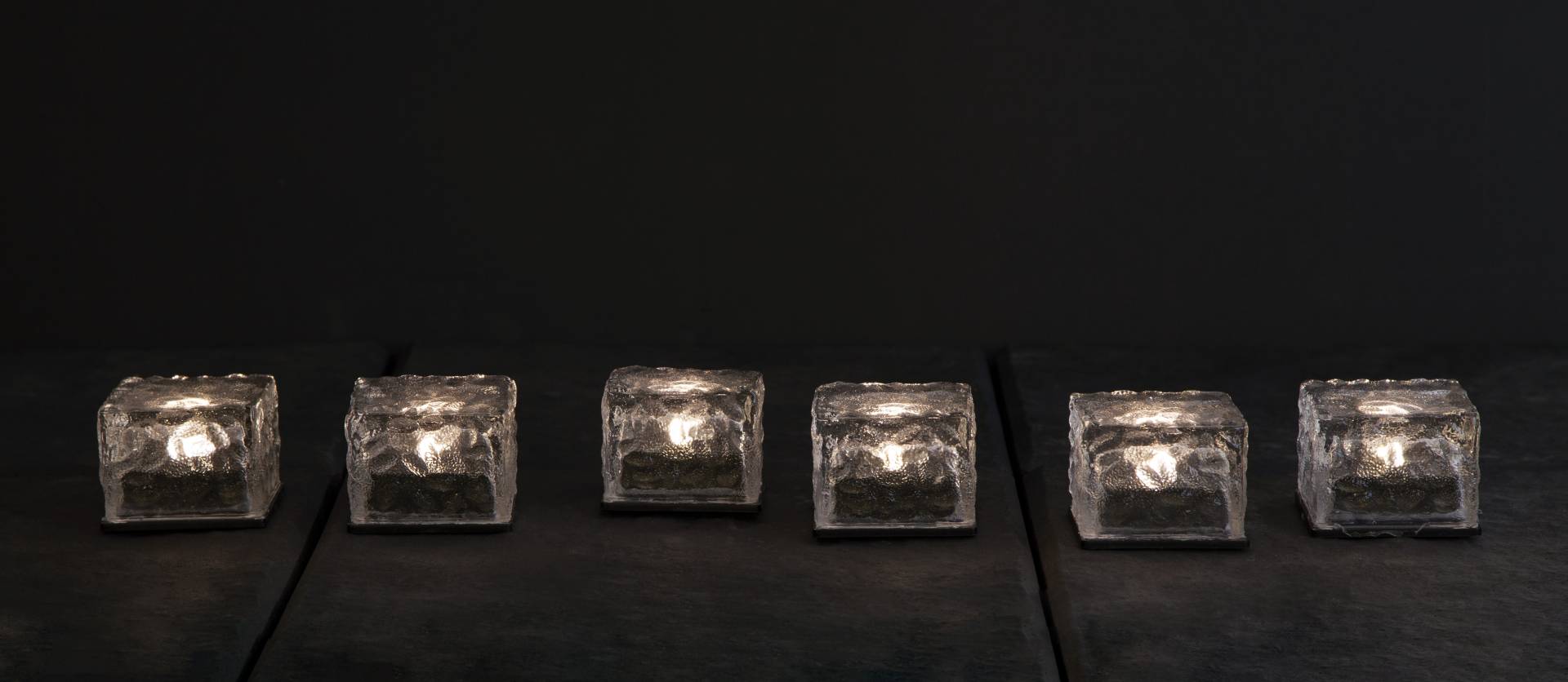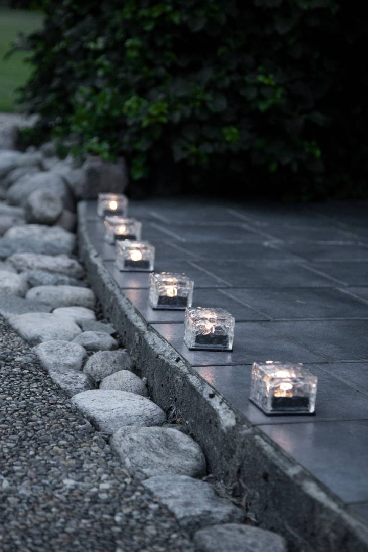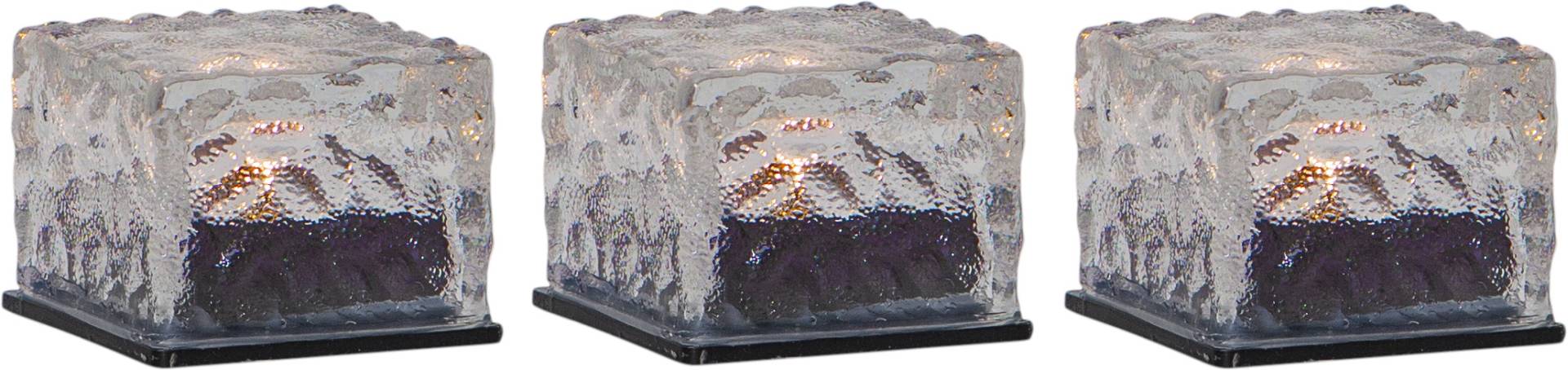 Aurinkokennolla toimiva jääkuution muotoinen koristevalaisin, joka valaisee hämärään aikaan lämpimän valkoisella valolla. Pakkaus sisältää kolme koristetta.