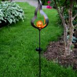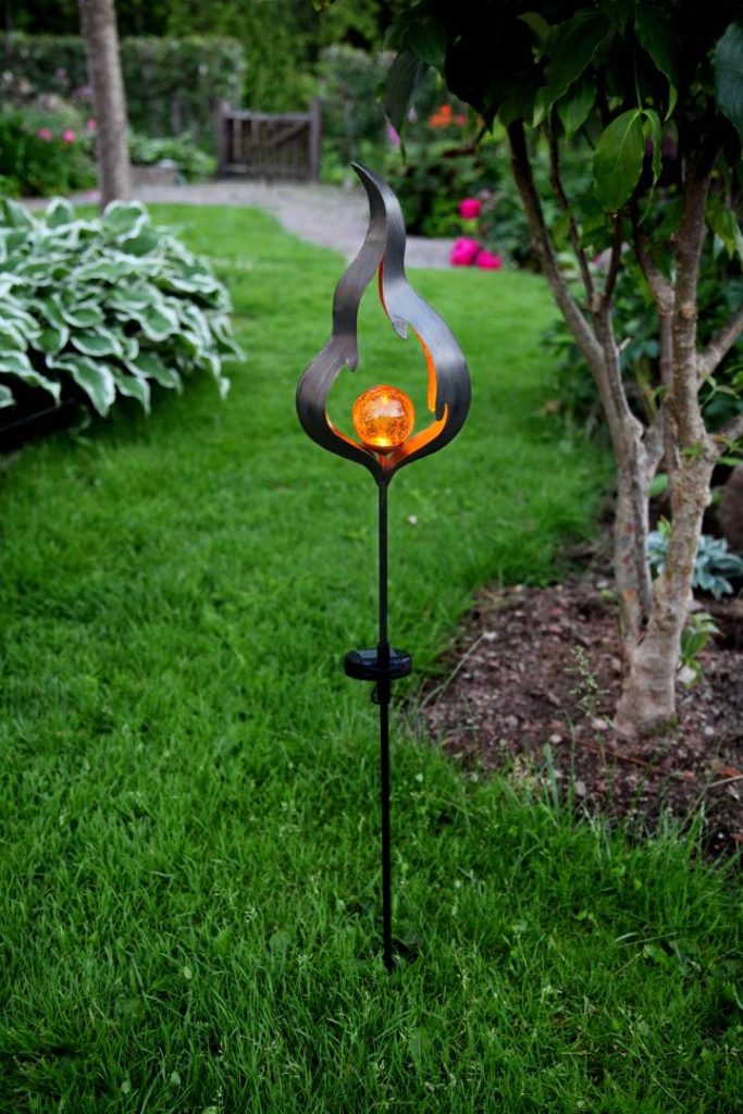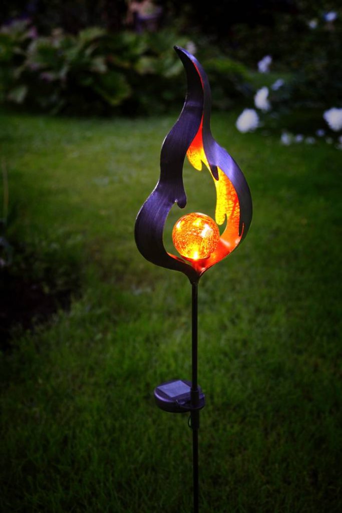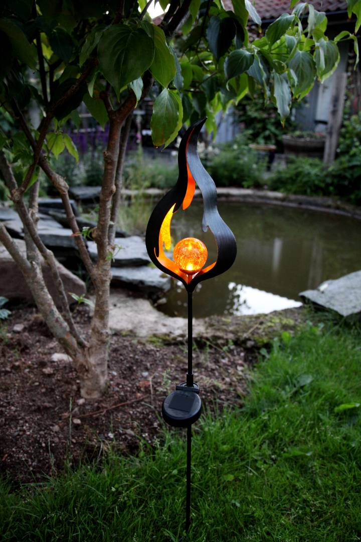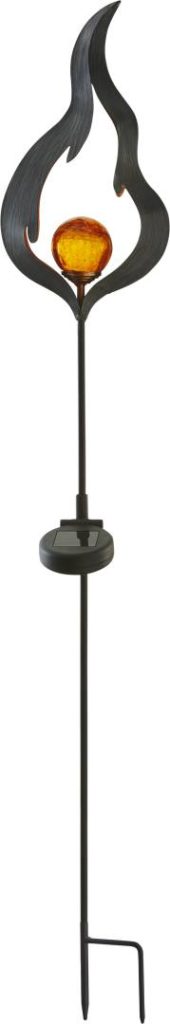 Aurinkokennolla toimiva koristevalaisin, jossa on liekkikoriste sekä meripihkan värinen lasipallo, jonka sisällä loistaa meripihkan sävyinen LED-valo. Kaunis koriste esimerkiksi sisäänkäynnin tai kulkureitin läheisyyteen sekä puutarhaan.