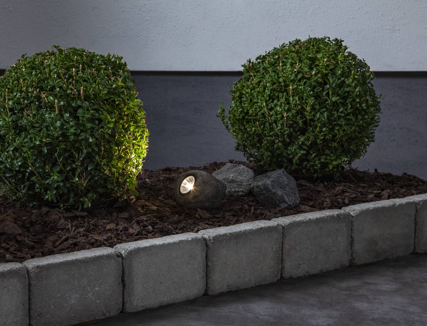 Aurinkokennolla toimiva kiven muotoinen koristevalo, jossa on lämpimän valkoinen valosävy. Aurinkokennovalo on helppo, käytännöllinen ja ympäristöystävällinen koriste puutarhaan. Aseta koriste esimerkiksi kukkapenkkiä valaisemaan. Valaisee 15 lumenin valoteholla.
