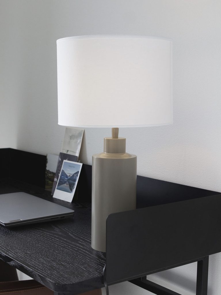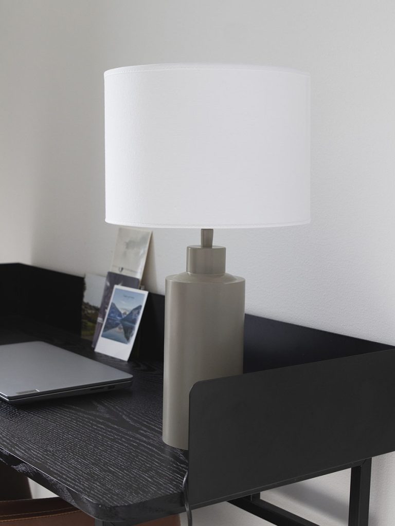 Solo-lampunjalka mattabeigellä viimeistelyllä. Pienikokoinen Solo on helposti sijoitettava lampunjalka, joka sopii moneen eri sisustukseen.