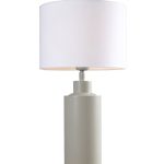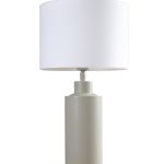 Pöytävalaisinpaketti, jossa on 32 cm korkea mattabeige Solo-lampunjalka ja sylinterin muotoinen valkoinen puuvillavarjostin.