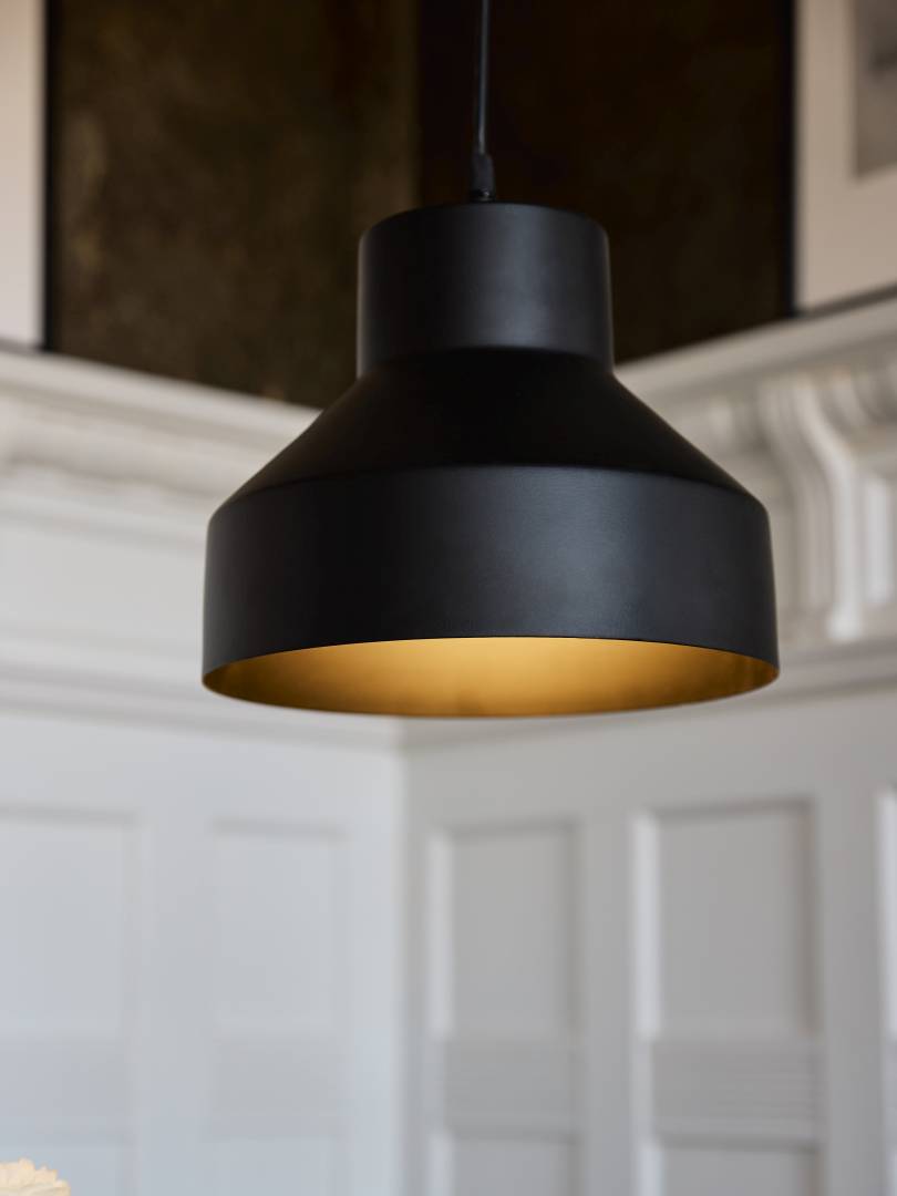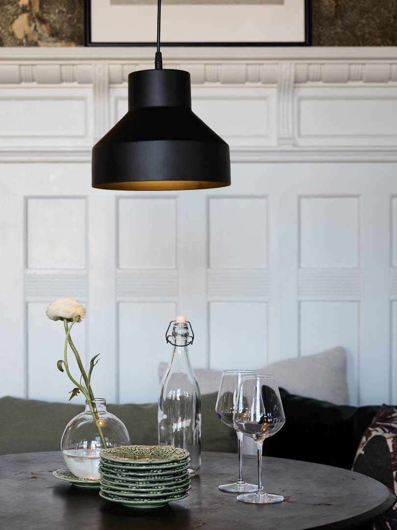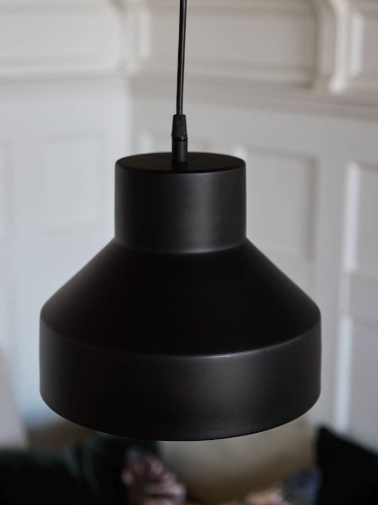 PR Homen Solo on pelkistetty metallista valmistettu riippuvalaisin, joka sopii esimerkiksi ruokapöydän tai keittiösaarekkeen yläpuolelle. Varjostin on mattamusta niin ulko- kuin sisäpinnalta.