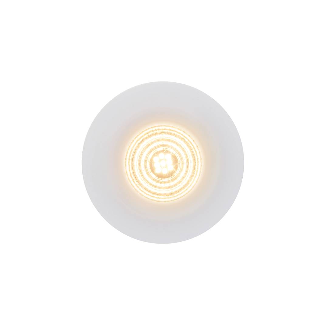 IP20, luokka 2. Kiinteä LED 6,1W, 450 lm, 2700K, 900 cd, RA 80, 36°. Paloaika n. 20 000 h.