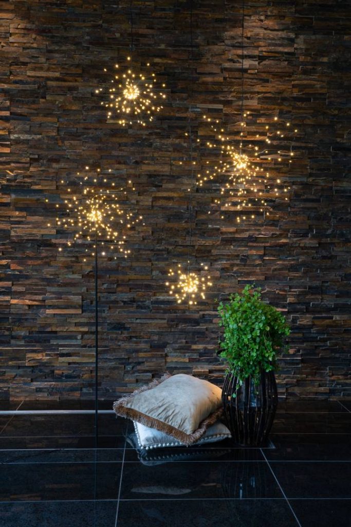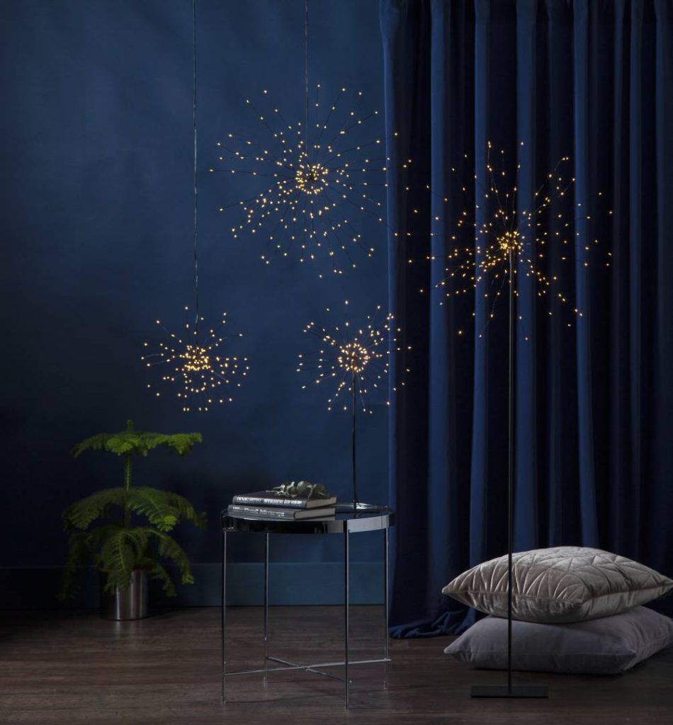 Sisäkäyttöön sopiva kaunis Firework-tähti 200 lämpimän valkoisella LED-valolla.