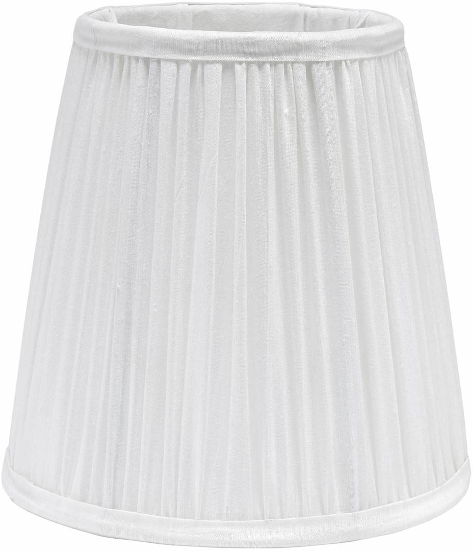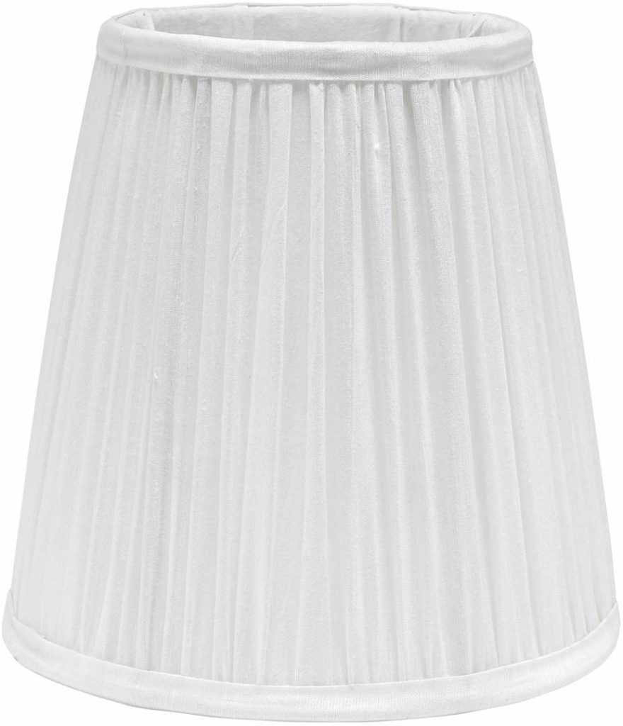 Lampunvarjostin valkoista rypytettyä keinosilkkiä, vuori samanväristä puuvillaa.