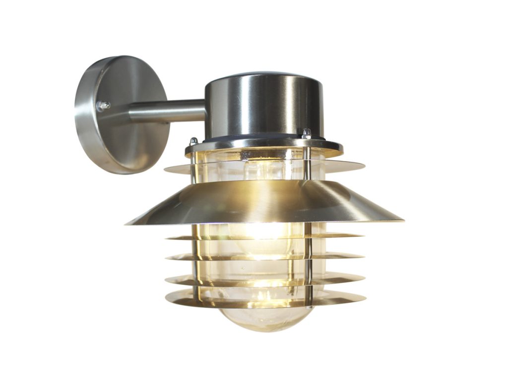 Elegantti ja ajaton seinävalaisin ruostumatonta terästä ja lasia.