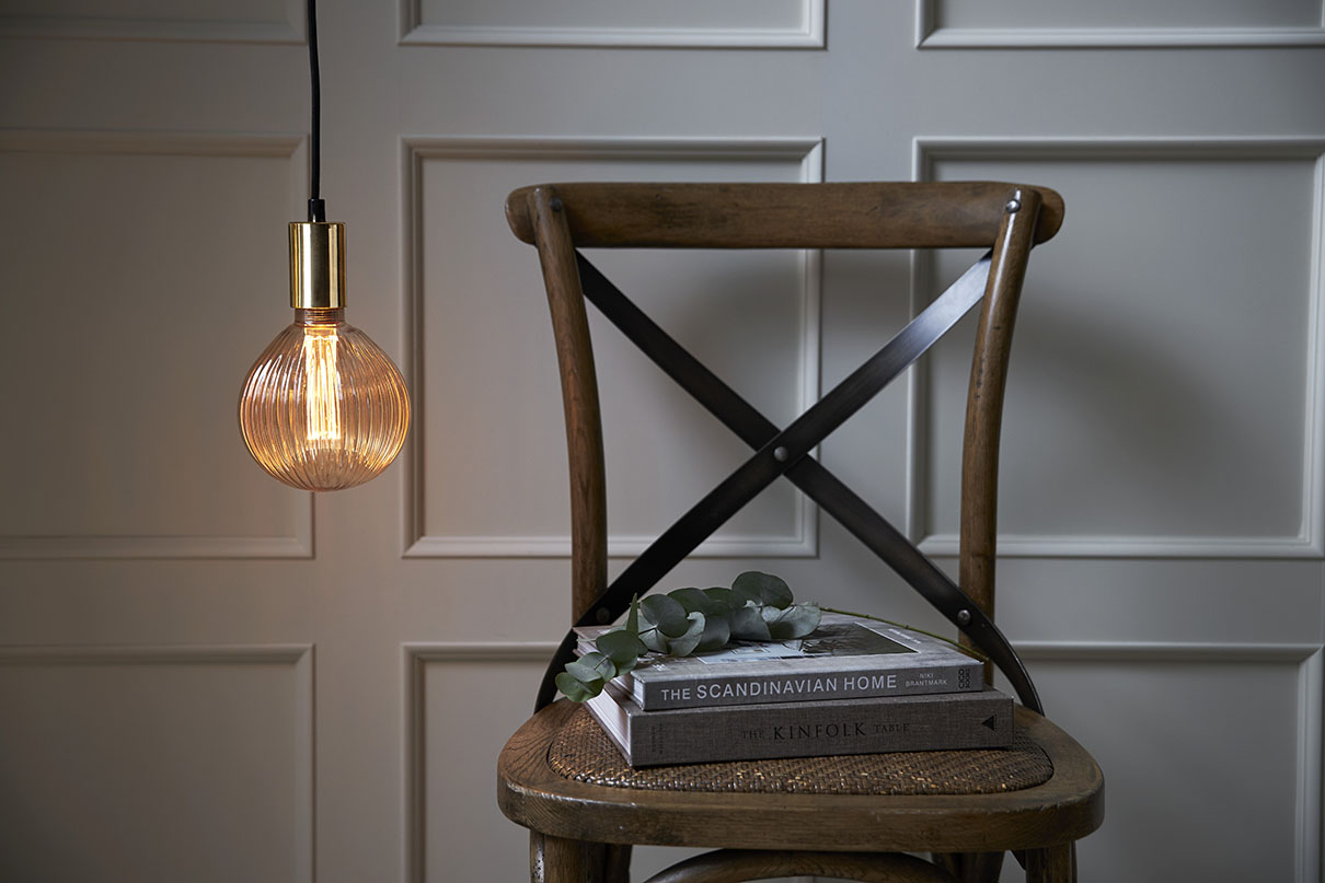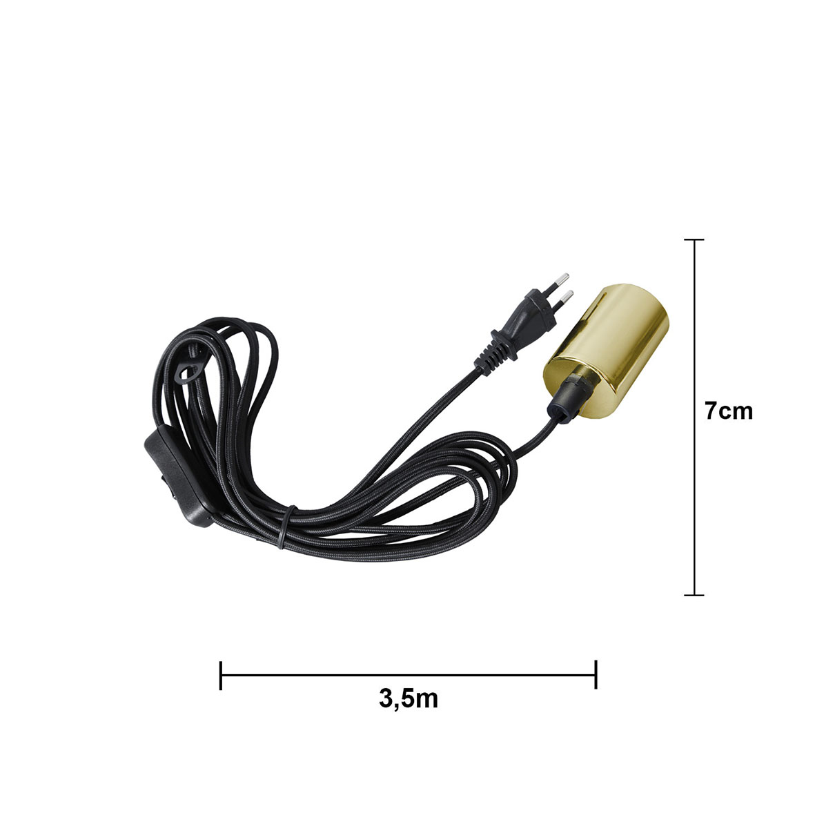Johtosarja mustalla 350 cm pitkällä tekstiilijohdolla ja messingin värisellä metallilampunpidikkeellä. Yhdistä kivan näköiseen valonlähteeseen.