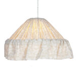 Valkoinen kierretty tekstiilijohto, pituus 120 cm. Asennus kattokoukkuun, sokeripalaliitäntä. Ei sisällä valaisinpistoketta.