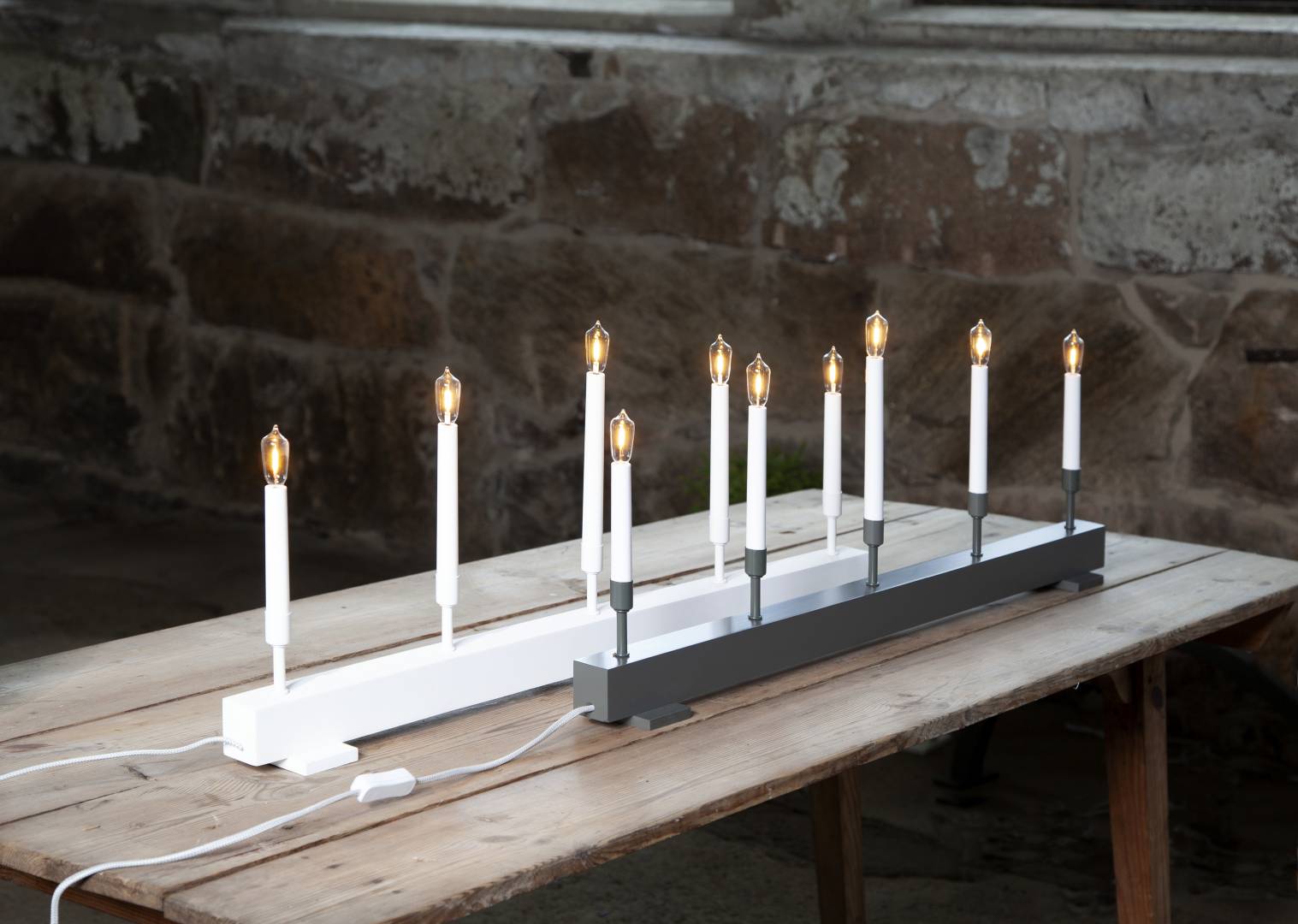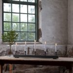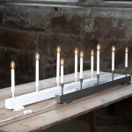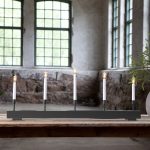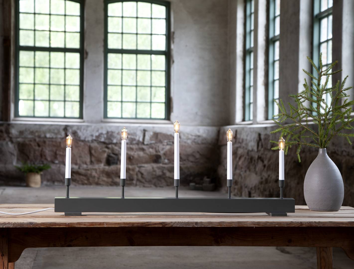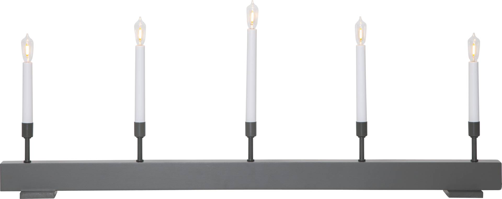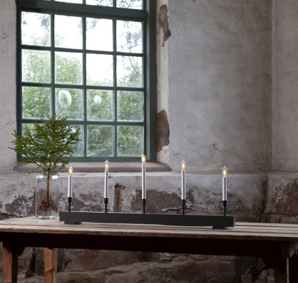 Moderni 5-haarainen kynttelikkö sisäkäyttöön. Puuta/metallia, kynttilät