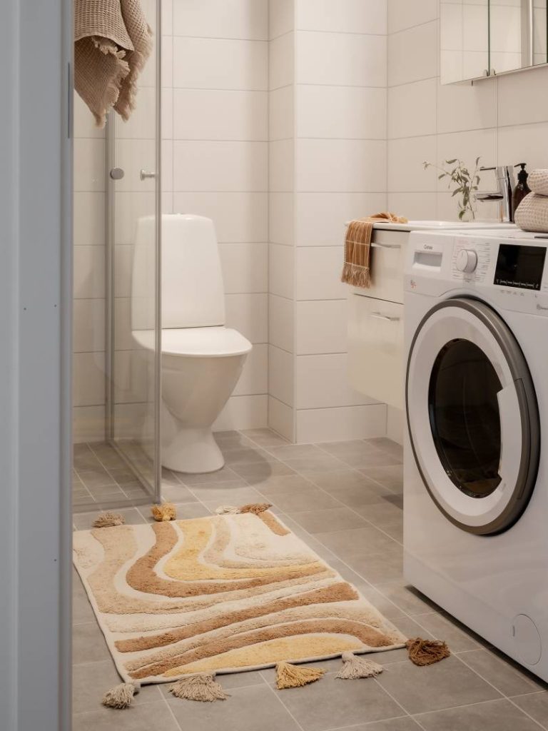 Tuftattu matto pehmeää puuvillaa. Värilliset tupsut.