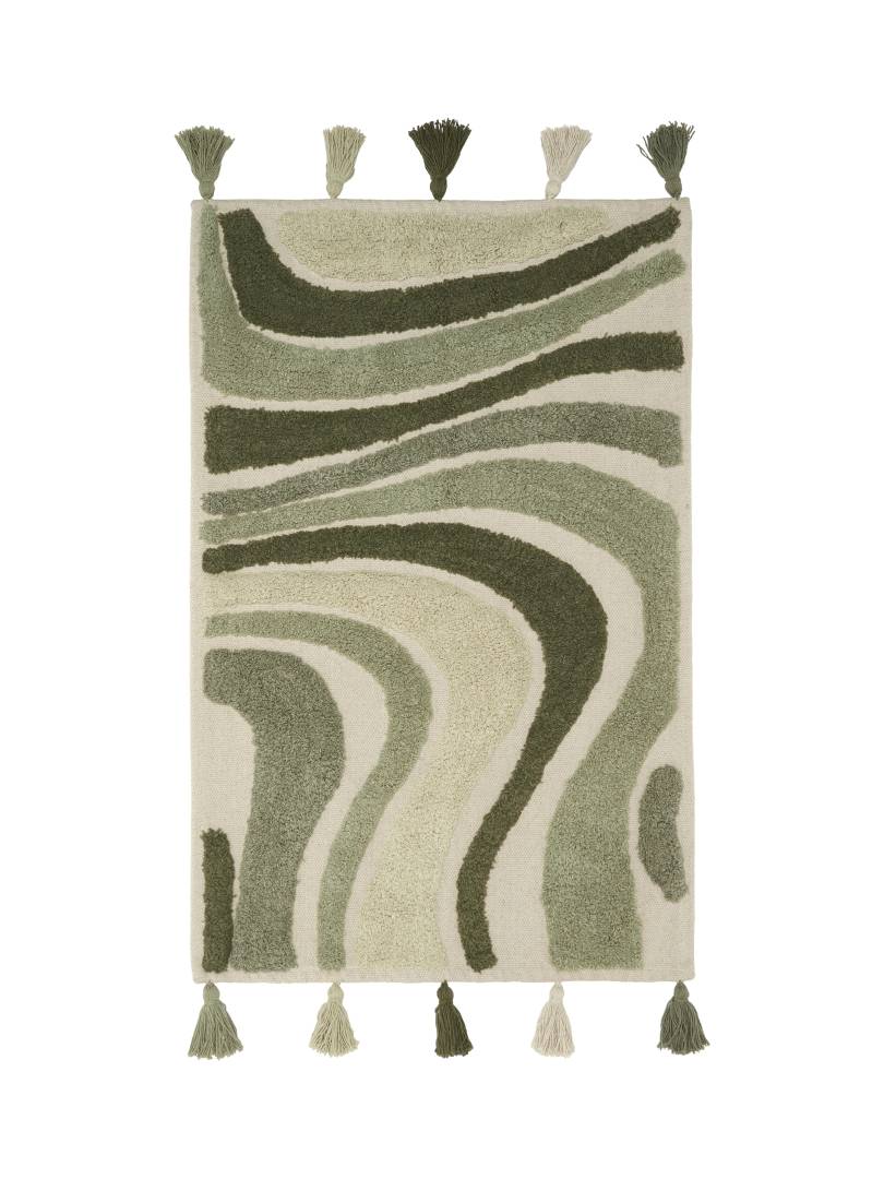 Tuftattu matto pehmeää puuvillaa. Värilliset tupsut.