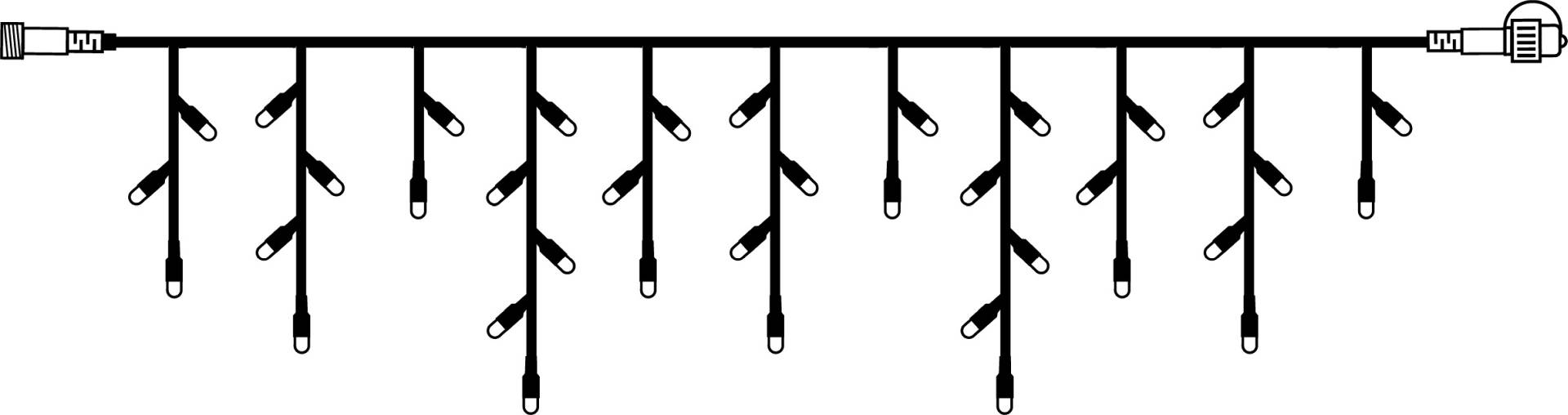 SR-491-93-1 on 1,5 metriä leveä ja 70 cm korkea jääpuikkovalosarja, jossa on mustassa kaapelissa 42 lämpimän valkoista LED-lamppua.