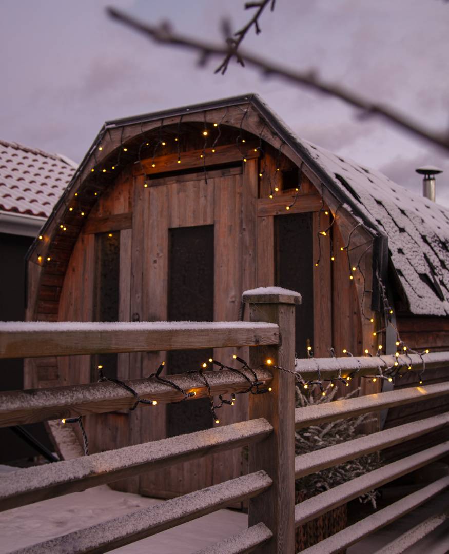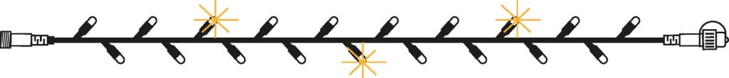 SR-491-13-1 on 5 metriä pitkä valosarja, jossa on mustassa kaapelissa 49 lämpimän valkoista LED-lamppua, joista kuudessa on vilkkumistoiminto.
