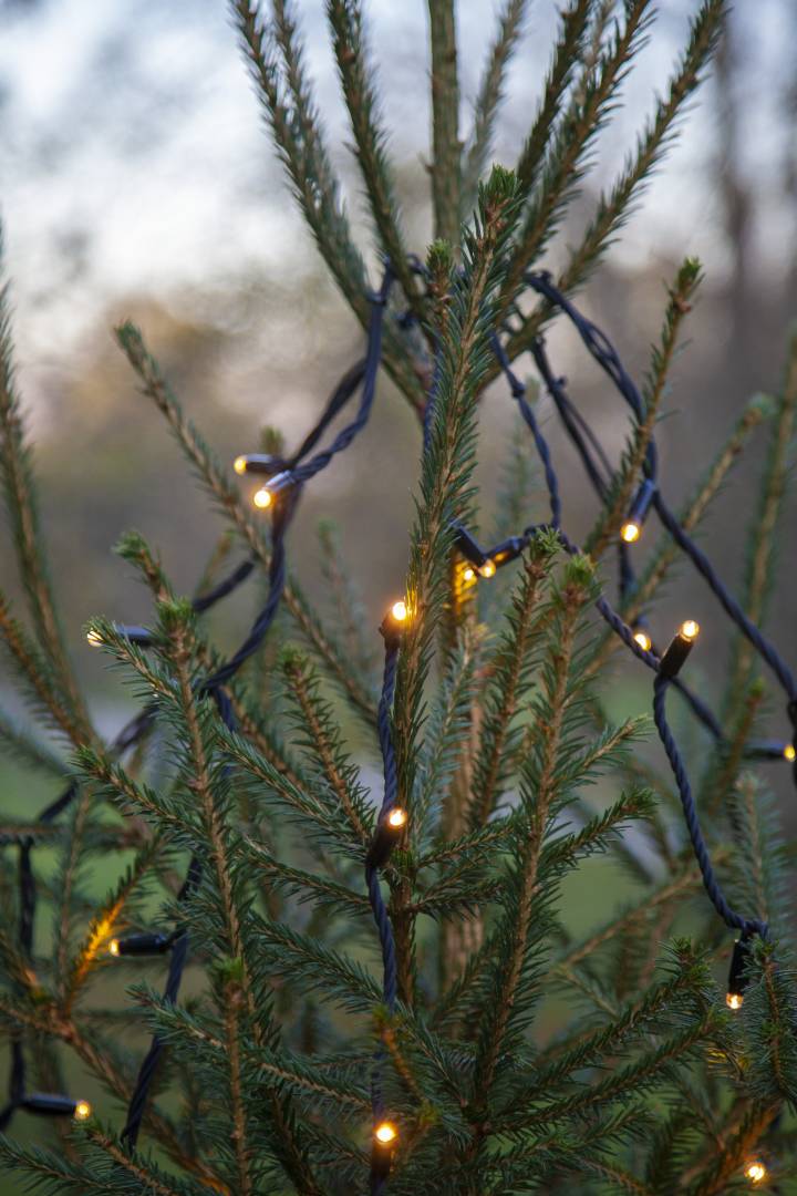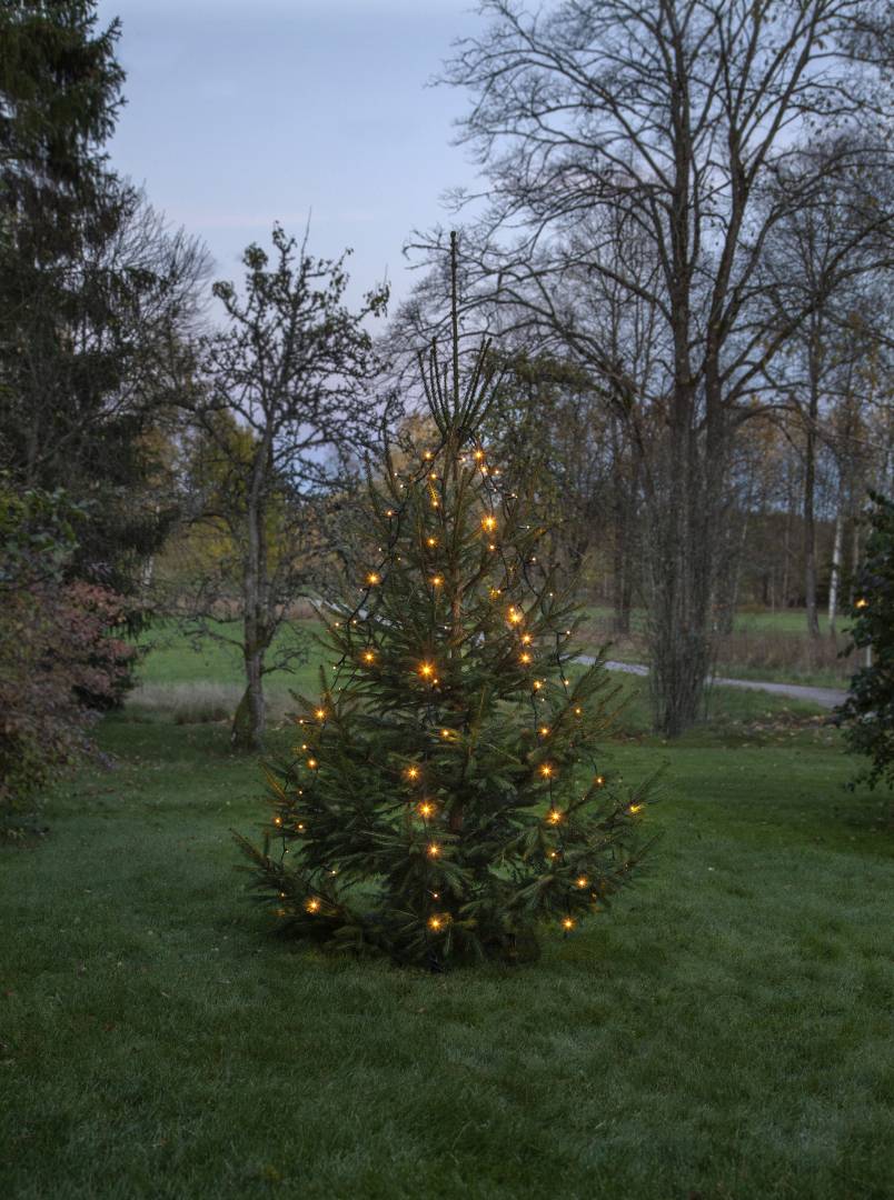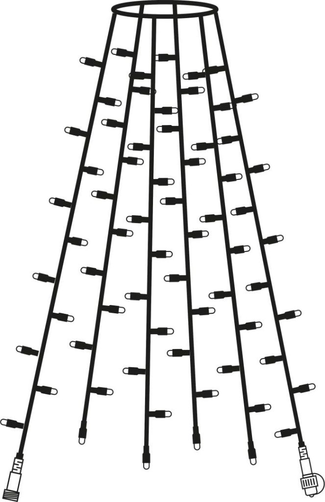 SR-491-71 on joulukuuseen sopiva valosarja, jossa on mustassa kaapelissa 84 lämpimän valkoista LED-lamppua jaettuna kuuteen nauhaan. Valosarjan korkeus on 180 cm.