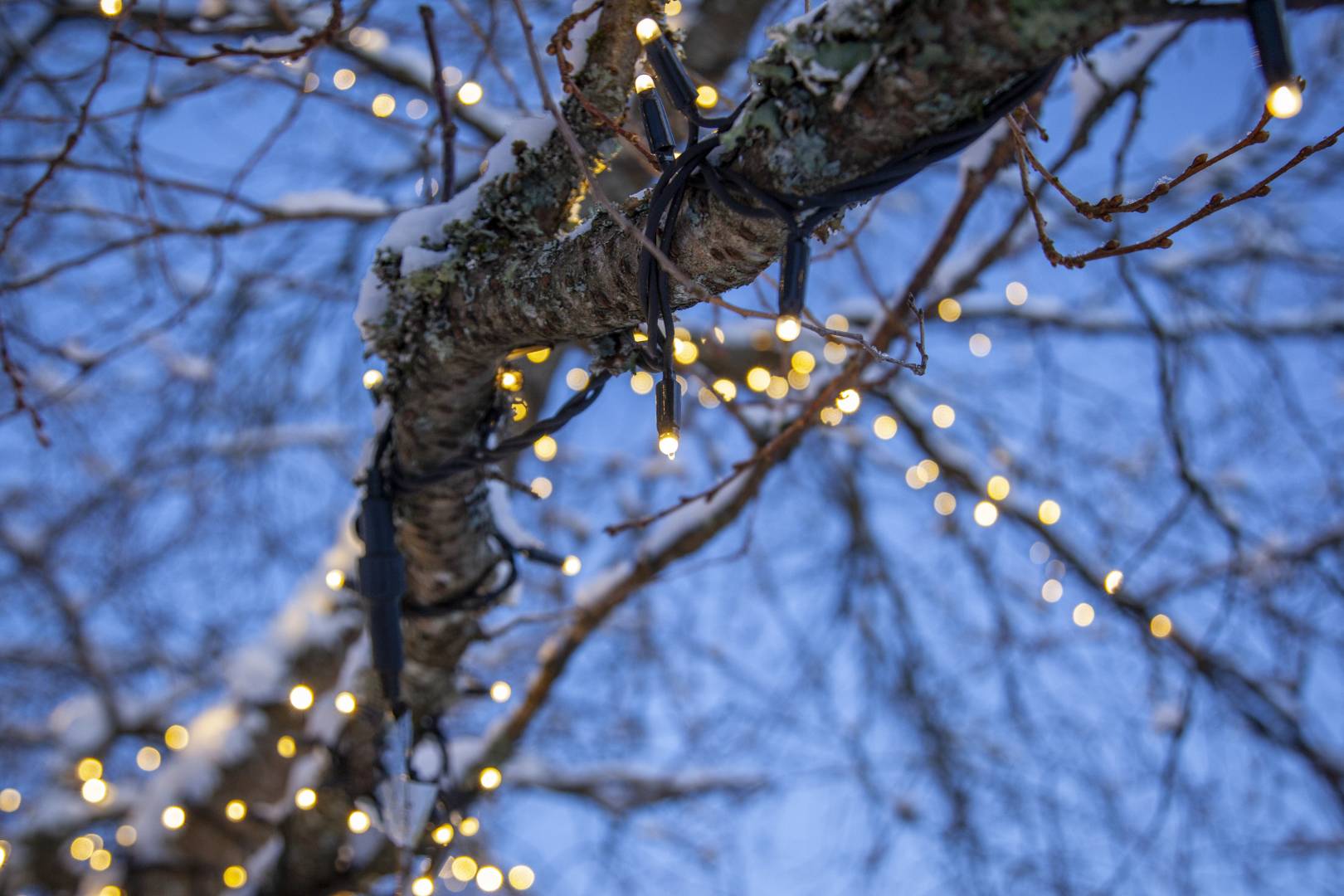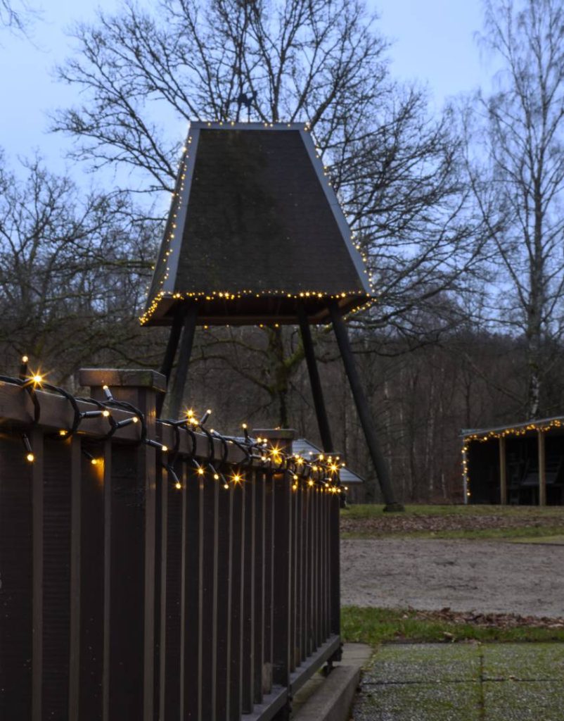 SR-465-06-1 on 5 metriä pitkä valosarja, jossa on mustassa kaapelissa 50 lämpimän valkoista LED-lamppua.