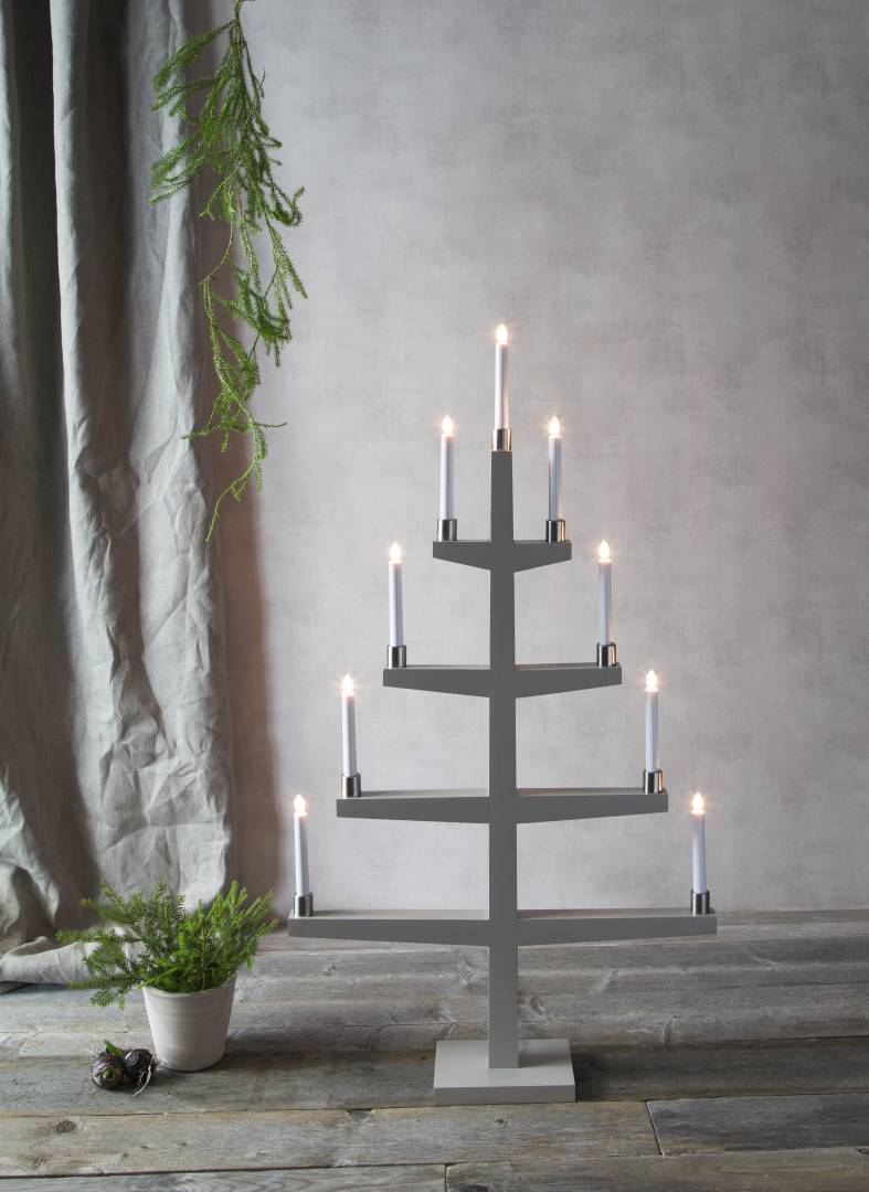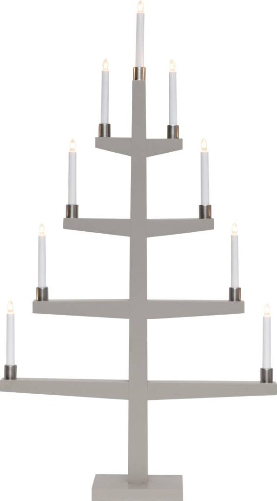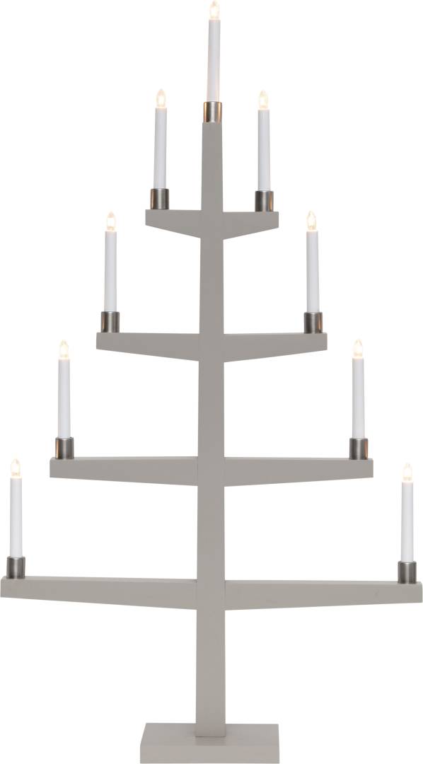Suurikokoinen puukynttelikkö, jossa on koristeena harjatun teräksen väriset kynttilänpidikkeet. Tall-kynttelikkö tuo kotiin ihanaa joulutunnelmaa.