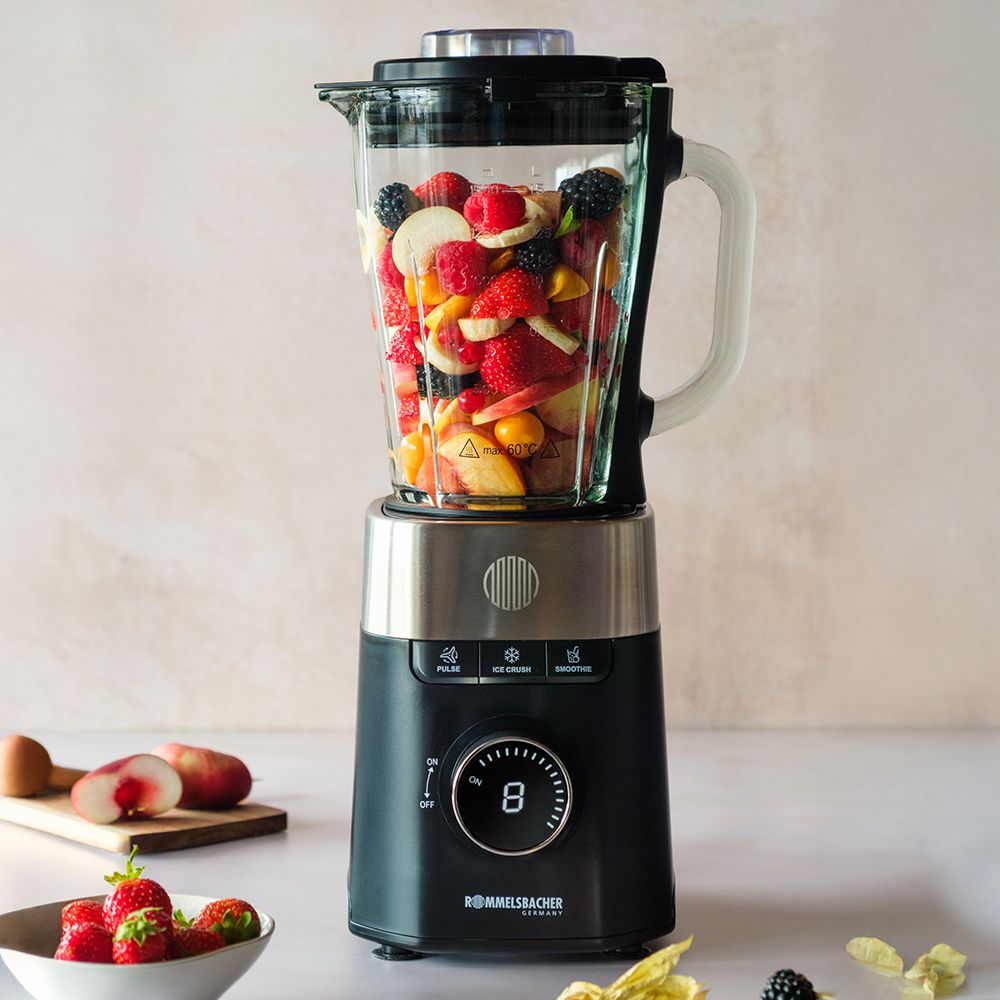 Rommelsbacher MX 1260 -tehosekoitin tarjoaa1200 W:n tehollaan ja 22 000 rpm:n nopeudellaan täydelliset tulokset sekunneissa. Olipa kyseessä kermainen smoothie, virkistävä cocktail tai murskattu jää – 8-portainen nopeudensäätö ja käytännöllinen pulssitoiminto takaavat optimaaliset tulokset joka kerta. Kaksi automaattista ohjelmaa (”Smoothie” ja ”Ice Crush”) mahdollistavat mutkattoman, nopean ja luotettavan valmistuksen vain napin painalluksella. Kestävä ruostumattomasta teräksestä valmistettu terä pilkkoo vaivattomasti jopa kovat ainekset ja on myös helppo puhdistaa. Tukeva lasikannu, jossa on mitta-asteikko, kaatonokka ja kätevä täyttöaukko, takaa helpon käsittelyn. Mukana tuleva syöttöpainin varmistaa, että ainekset käsitellään optimaalisesti. Kattavat turvaominaisuudet, kuten ylikuumenemissuoja, liukumattomat jalat ja automaattinen virrankatkaisu, jos lasi ei ole kunnolla paikallaan, takaavat maksimaalisen käyttöturvallisuuden. MX 1260 voidaan purkaa kokonaan osiin ja puhdistaa helposti, joten se on välttämätön, tehokas ja turvallinen keittiöapulainen jokapäiväiseen käyttöön.