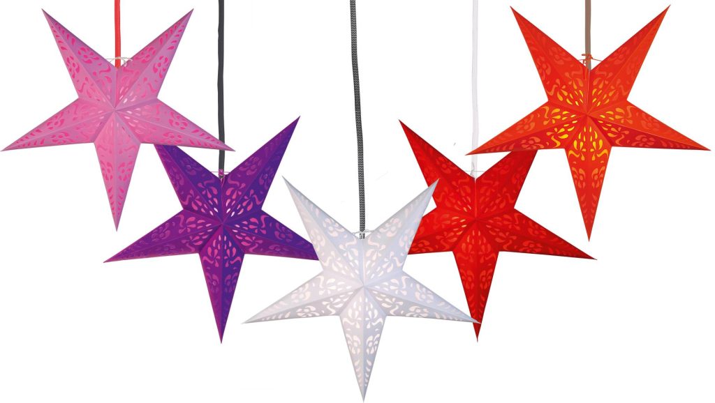 Johtosarja paperitähdille 350 cm pitkällä valkoisella tekstiilijohdolla. Seinäpistoke.