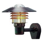 Seinälyhty. Väri: kupari, kirkas lasi.