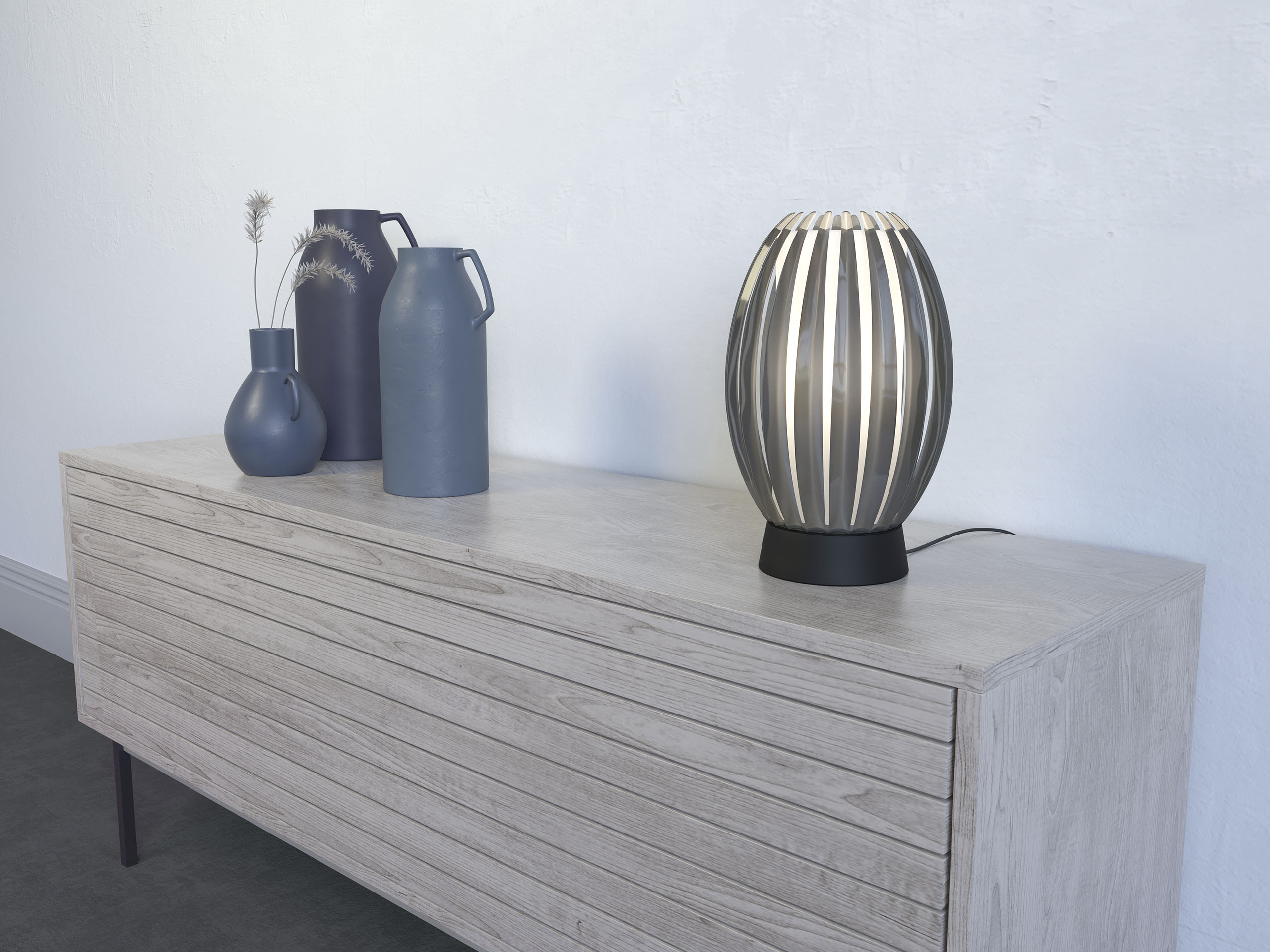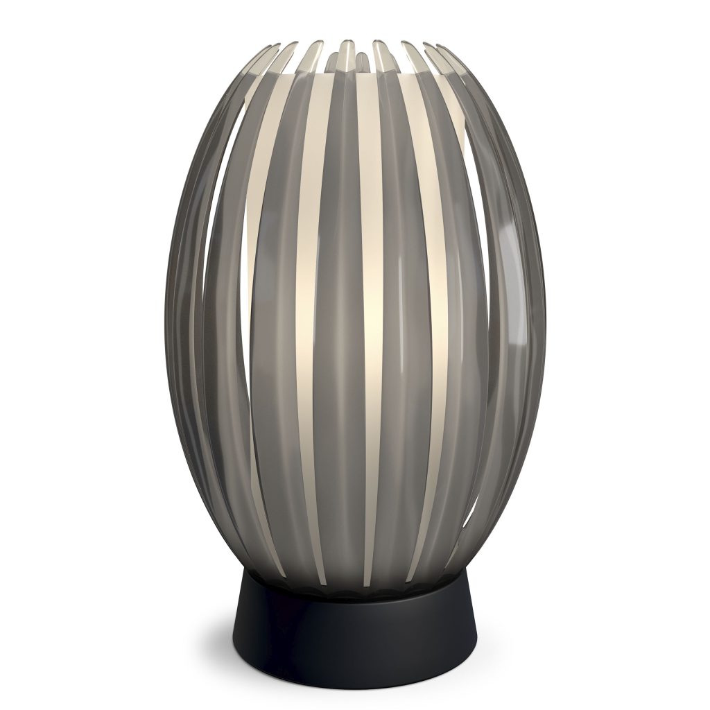 Tentacle-pöytävalaisimen muotoilu on karismaattinen ja uniikki. Varjostin lamelleineen luo koristeellisen valaistuksen, joka sopii useaan eri tilaan.
