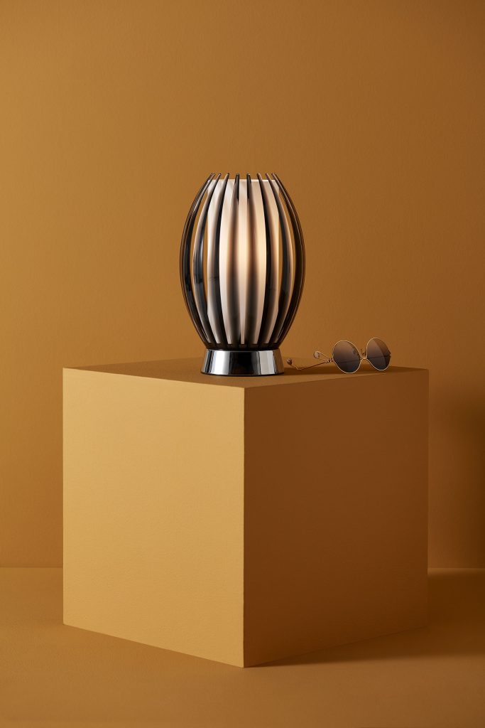 Tentacle-pöytävalaisimen muotoilu on karismaattinen ja uniikki. Varjostin lamelleineen luo koristeellisen valaistuksen, joka sopii useaan eri tilaan.