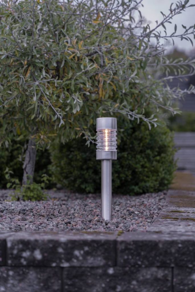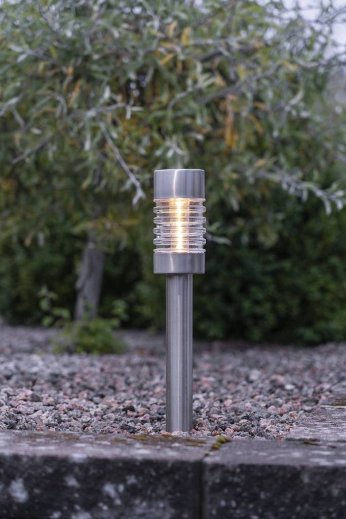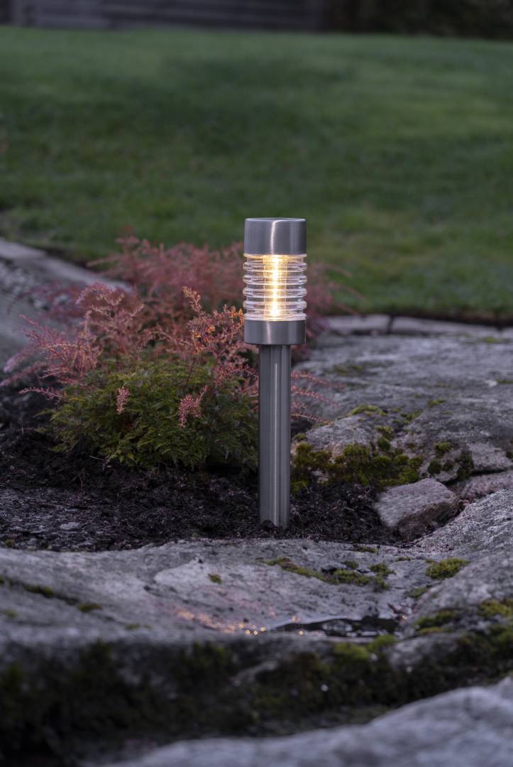 Aurinkokennolla toimiva 42 cm korkea pollari, jossa lämpimän valkoinen LED-valo valaisee hämärällä 5 lumenin valoteholla. Sopii esimerkiksi sisäänkäynnin läheisyyteen, kulkureittien varrelle tai puutarhaan.