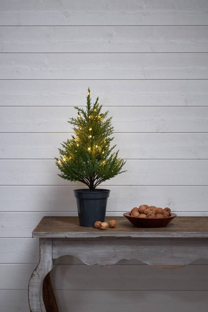 55 cm korkea sisäkäyttöön sopiva koristepuu, jonka oksat muistuttavat tuijan oksia.