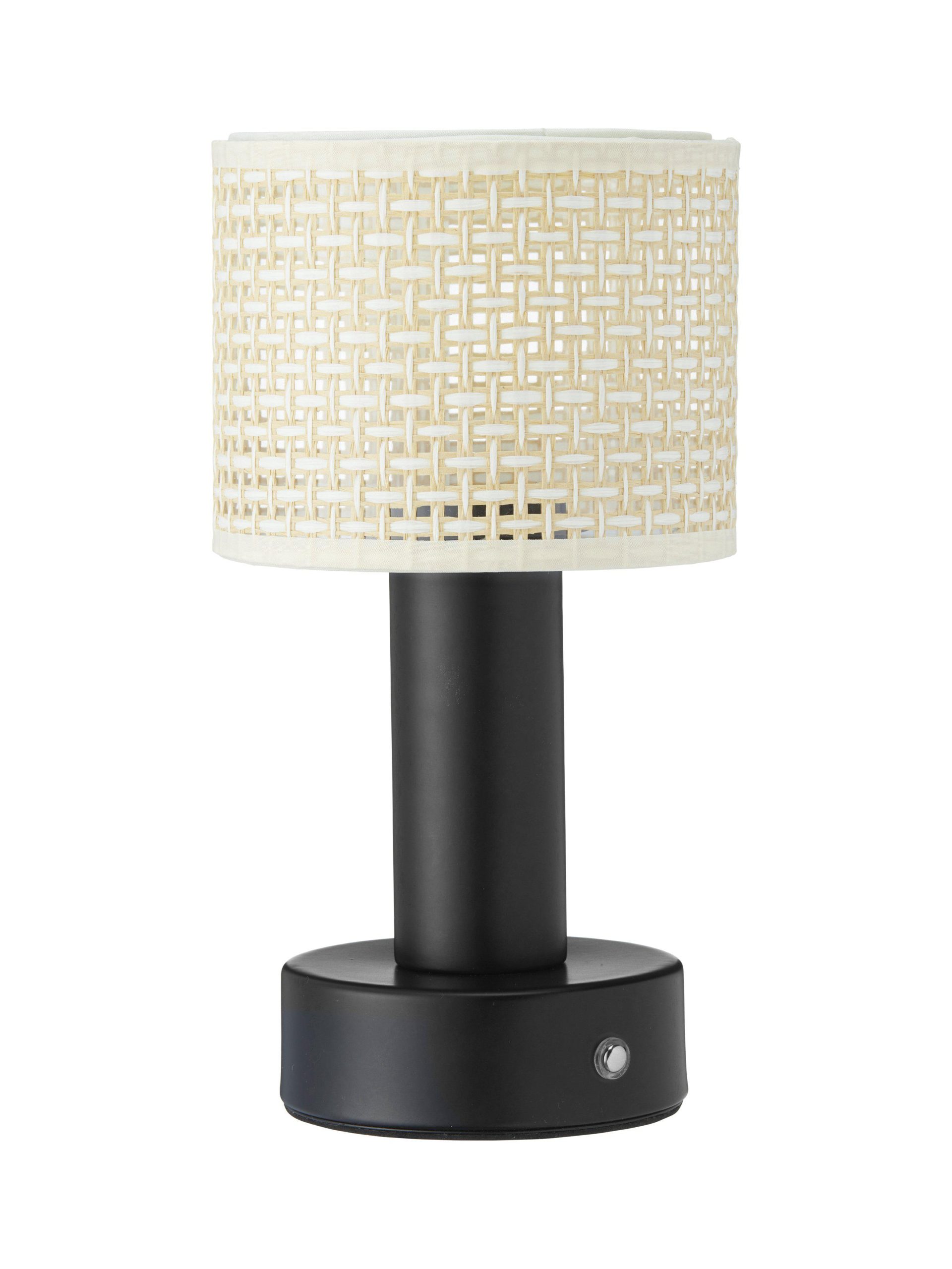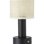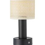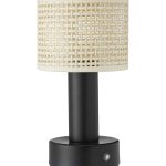 Ladattavassa Tiara-pöytävalaisimessa on kolme eri värilämpötilaa: 2700, 4000 ja 6500 Kelviniä. Valaisimen runko on metallia ja varjostin rottinkia.