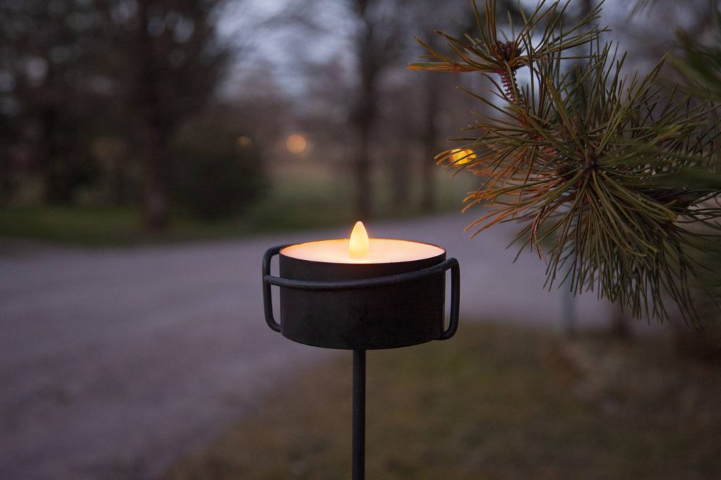 Ulkokäyttöön tarkoitettu paristokäyttöinen LED-ulkoroihu, jonka 18 lediä liekehtivät aidon näköisesti. Liekin väri on keltainen.
