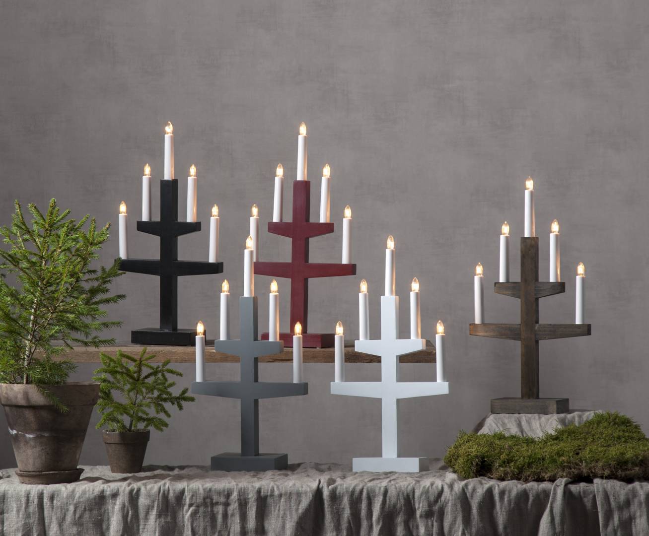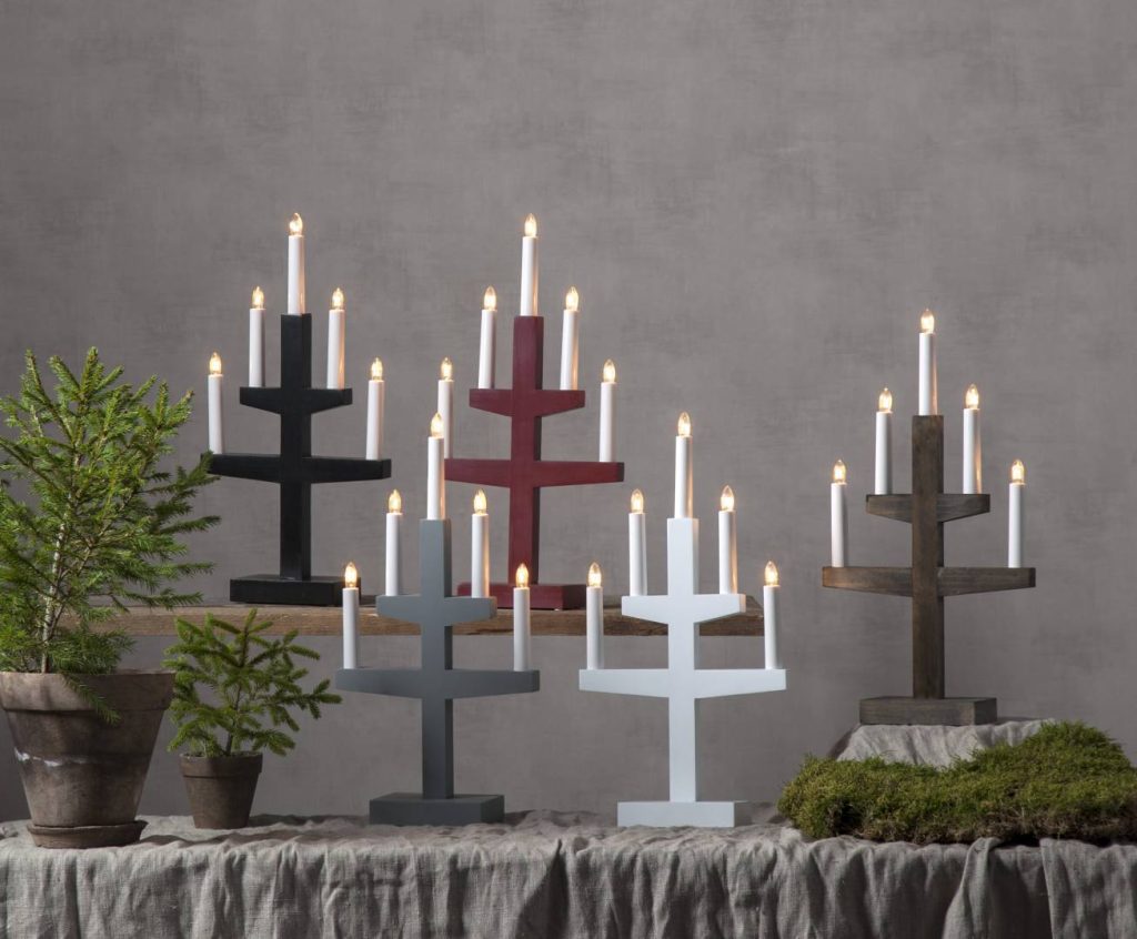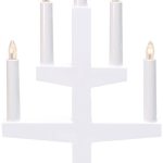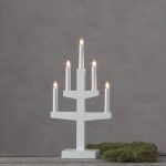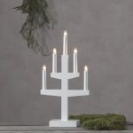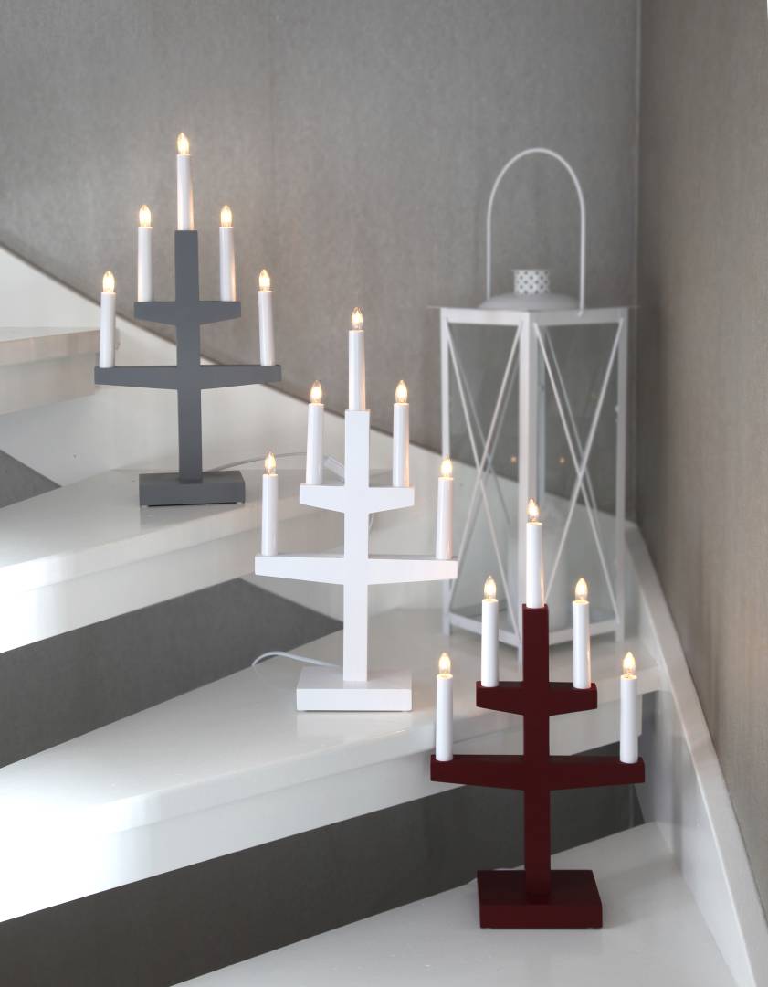 Tyylikäs valkoiseksi maalattu puukynttelikkö, joka sopii esimerkiksi ikkunalaudalle tuomaan ihanaa joulutunnelmaa.