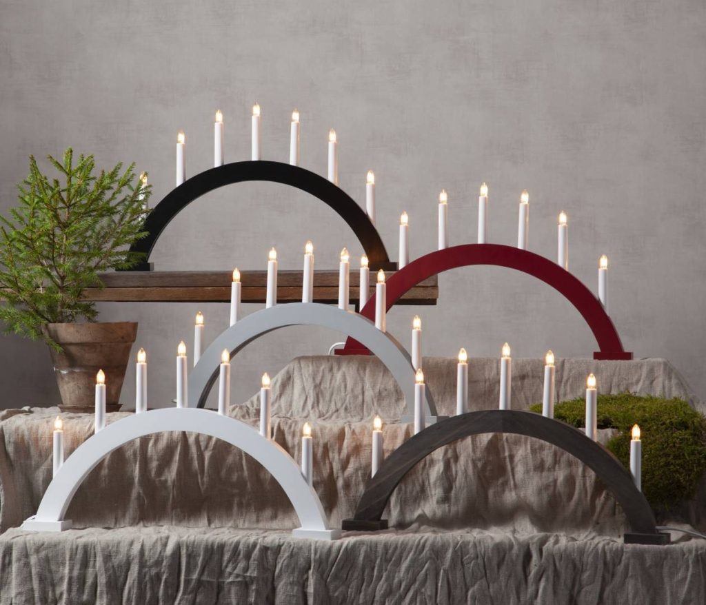 Kaarimallinen puinen kynttelikkö. Aseta kynttelikkö esimerkiksi ikkunalaudalle luomaan ihanaa jouluista tunnelmaa kotiin.